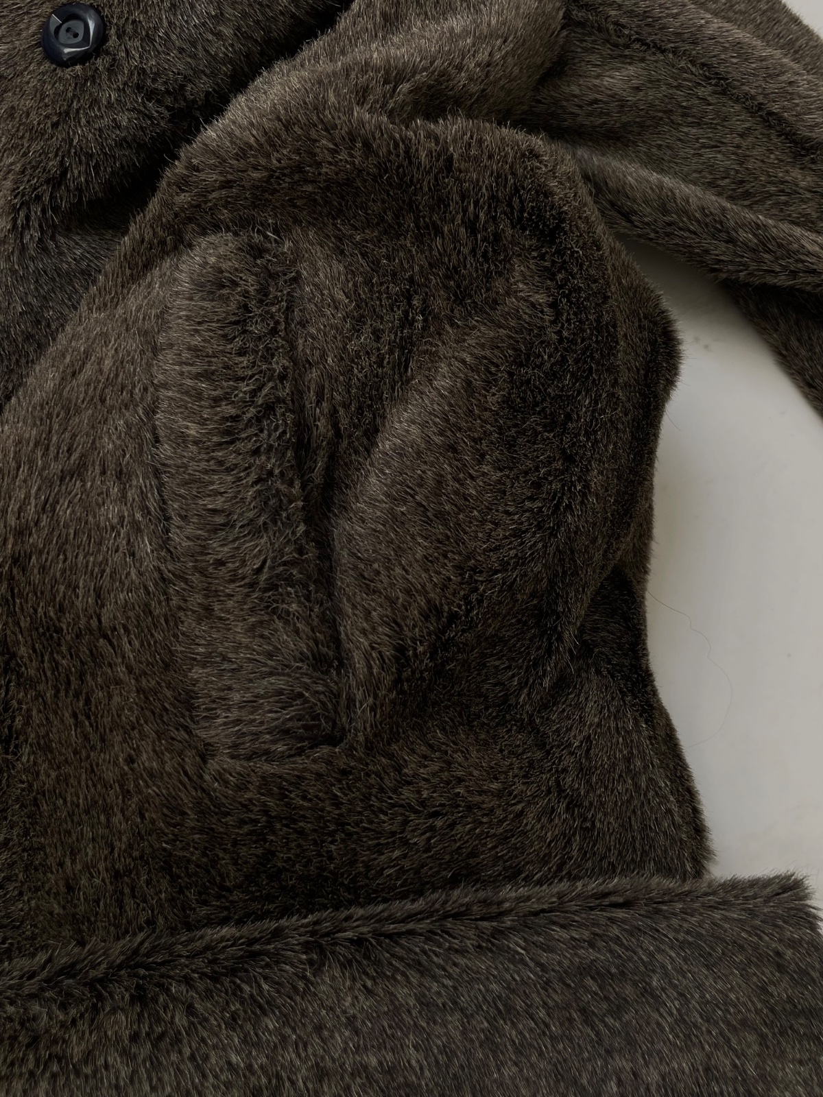 Je dlhší, s golierom a vreckami, podšitý hnedou látkou (100 % polyester), krásne drží tvar a pôsobí luxusne.