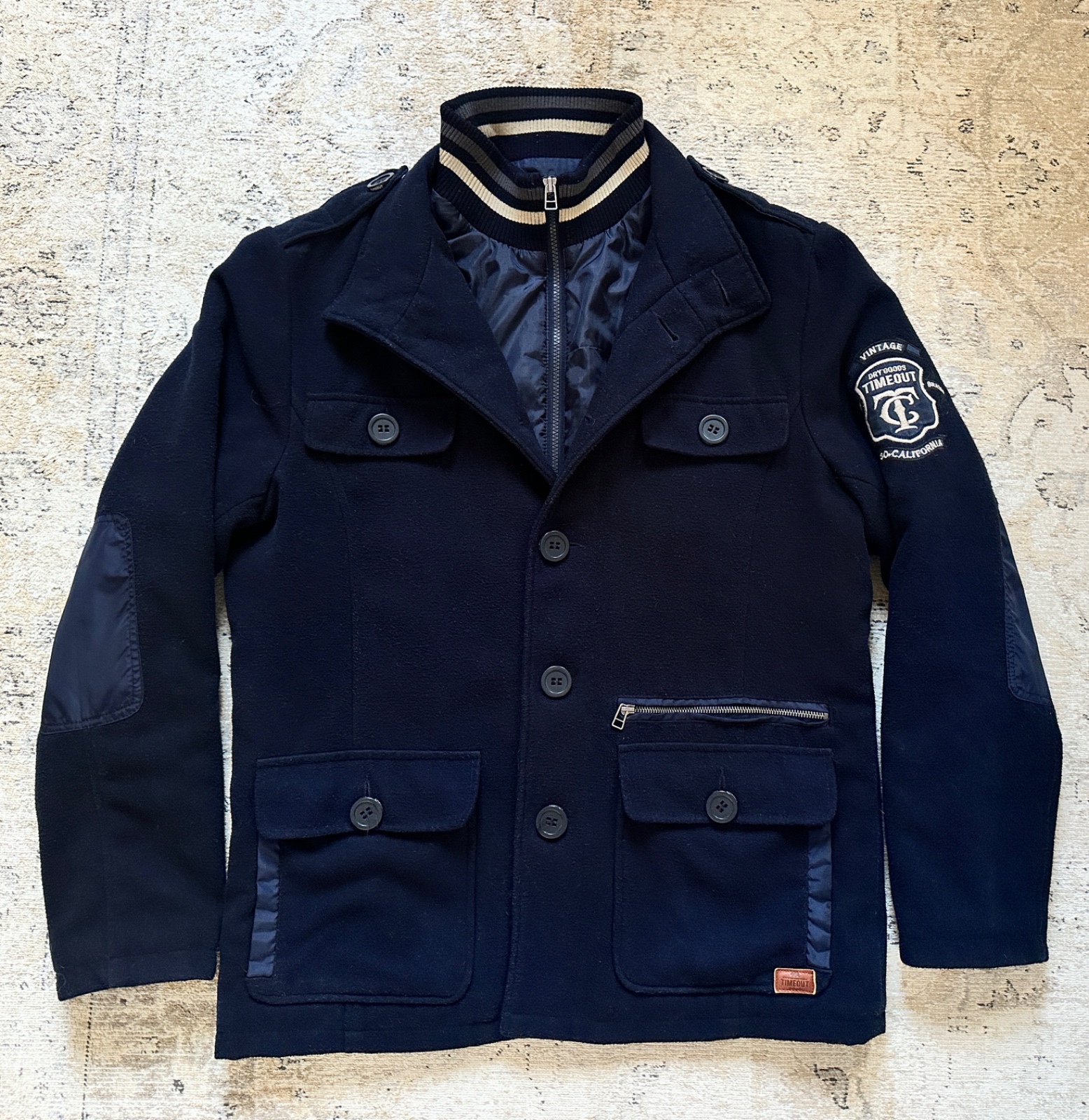 Štýlová bunda z kabátoviny zateplená hrubou prešívanou podšívkou. V super stave, bez poškodení.