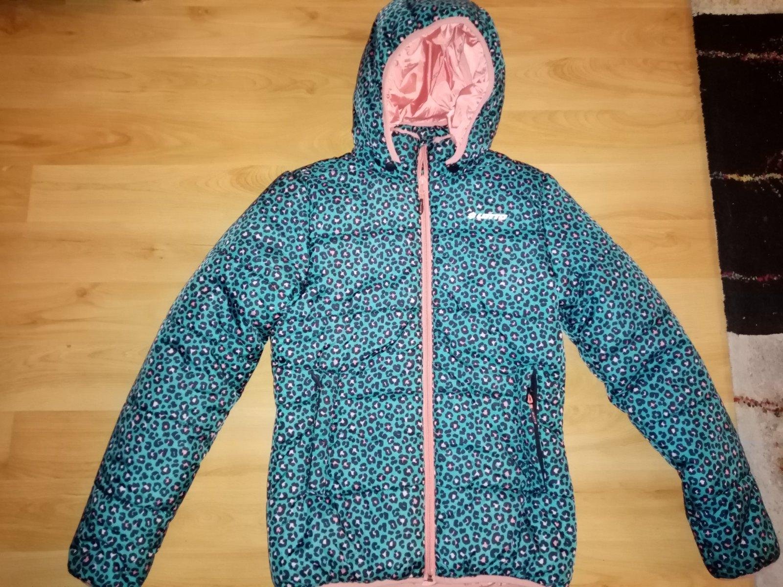 Kombinácia tmavošedej a tyrkysovej, vnútri ružová Pekne sedí na postave, dcéra nosila len párkrát za zimu na lyžovačke, výborný stav