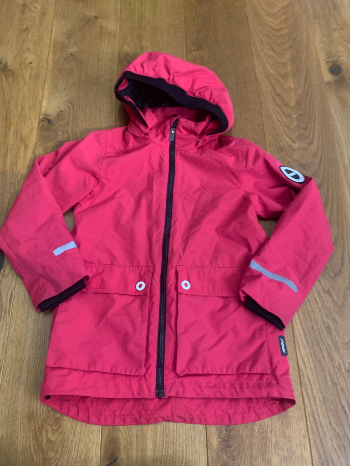 veľmi praktická nepremokavá a neprefúkavá bunda s prešívanou vložkou, sú to 2 bundy, ktoré sa dajú zapnúť do 1, alebo sa dá samozrejme nosiť každá zvlášť, od miernej zimy po koniec jari a od začiatku jesene po miernu zimu, nosená, funkčne úplne ok, esteticky sú na zadnom diely nejaké škrvny, sedí na 122 a 128