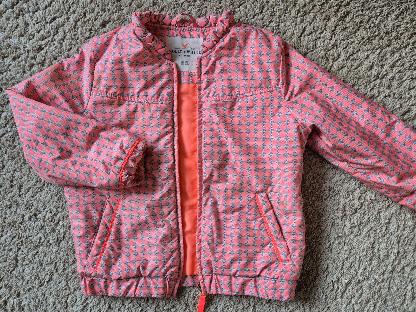 Predám krásnu bundu po neterke, kupovaná nové, nosena jednu sezónu, poškodenia nemá. Rozmery na foto. Veľkosť píšu 128 ale za nás skôr 122 (kvôli dĺžke rukávov).