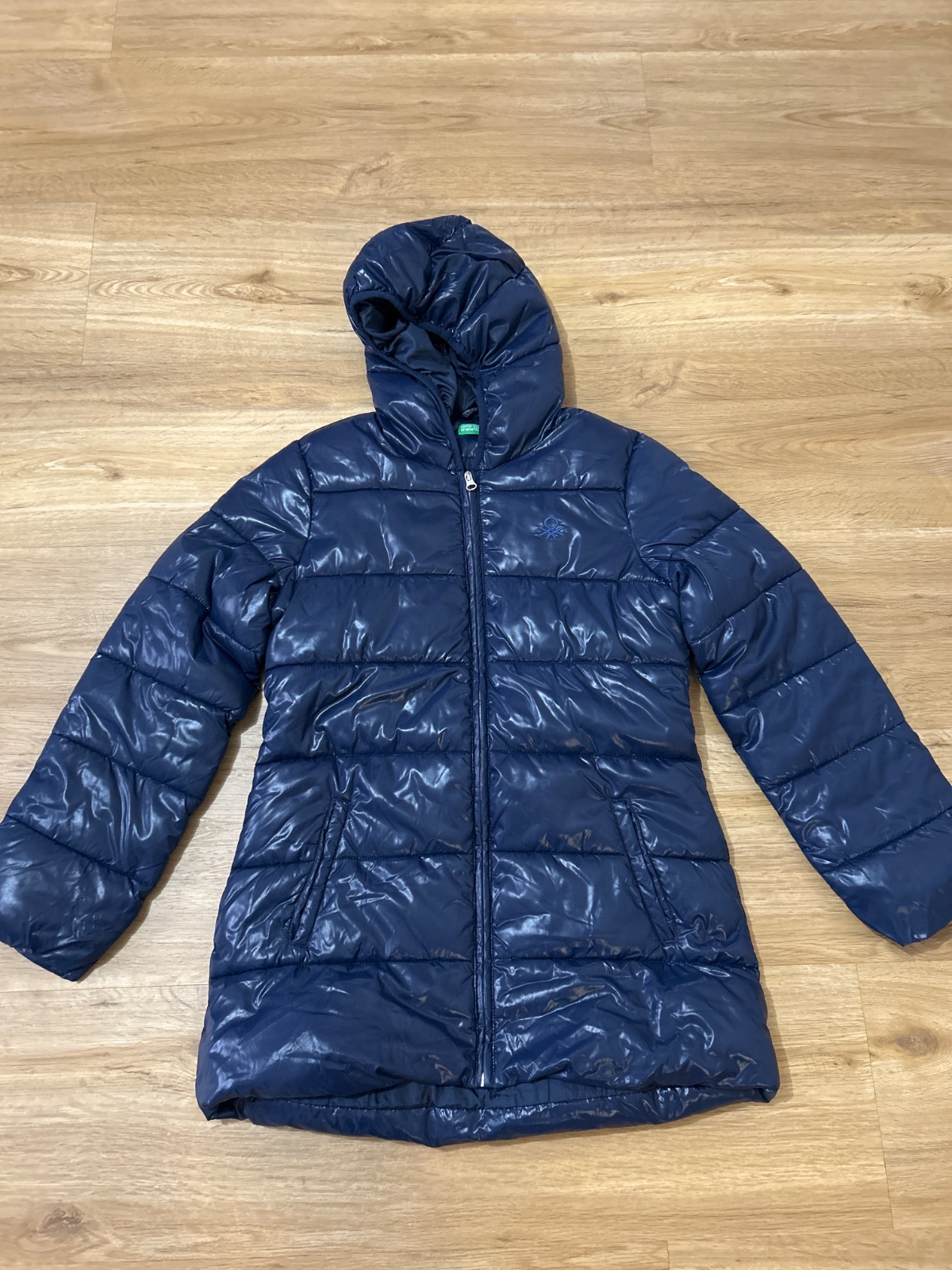 Teplá vetrovka Benetton s kapucňou, píšu na výšku 150cm, vek 10-11 rokov. Celková dĺžka 65cm. Rukáv 55cm. Vhodná aj pre útlu ženu.