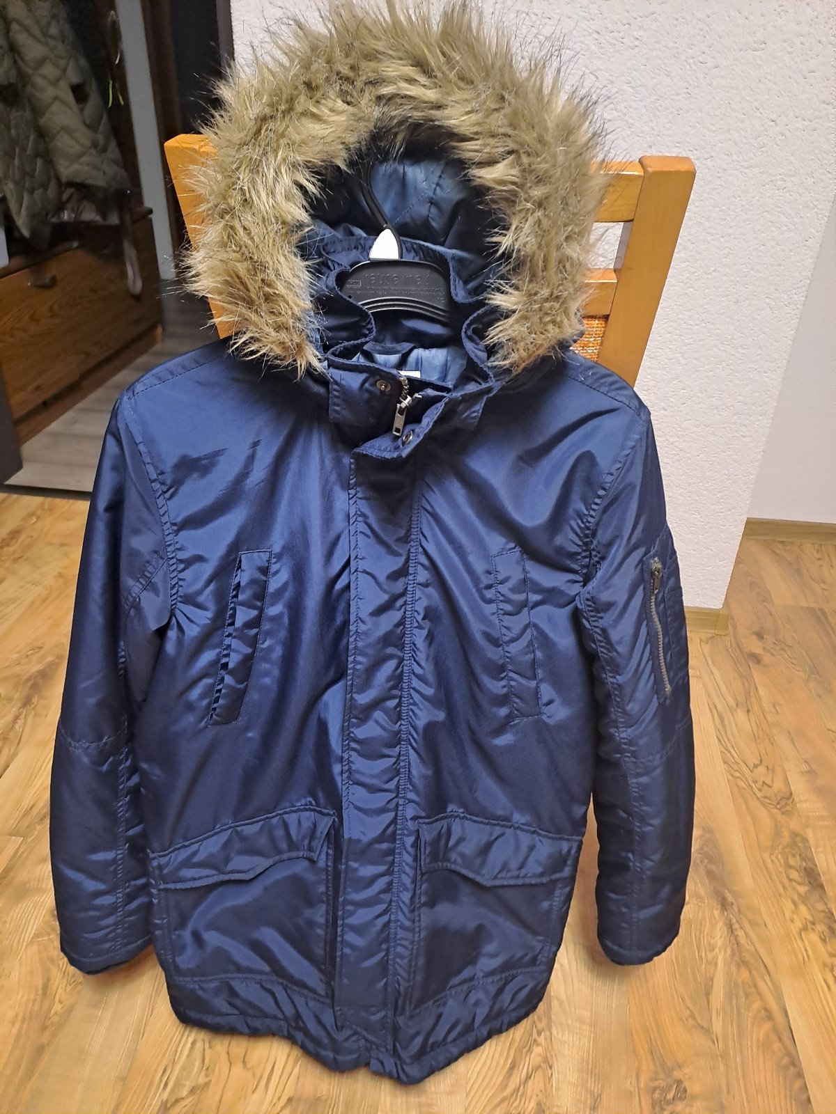 Predám bundu v stave ako na foto.Rozmery: dĺžka 82cm,šírka 2x54cm rukav od plecnice 65cm s patentom.