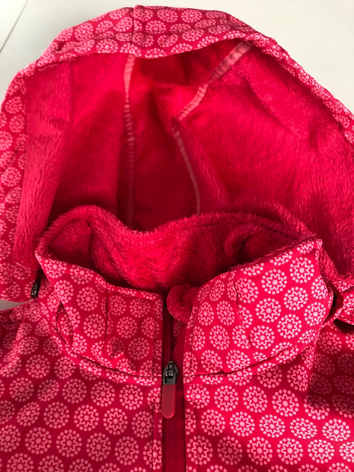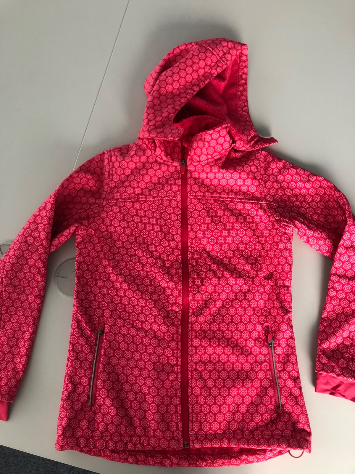 Nádherná bunda, ako nová, nestihli sme ju nosiť. Úžasná je, vnútro ma také jemné chlpkaté mäkkučké. Preto je vhodná aj na studenú jeseň. Kapucňa odopínacia, ma aj tie návleky na ruky na palec. Je pekne vypracovaná. Vzadu reflexný prvok.