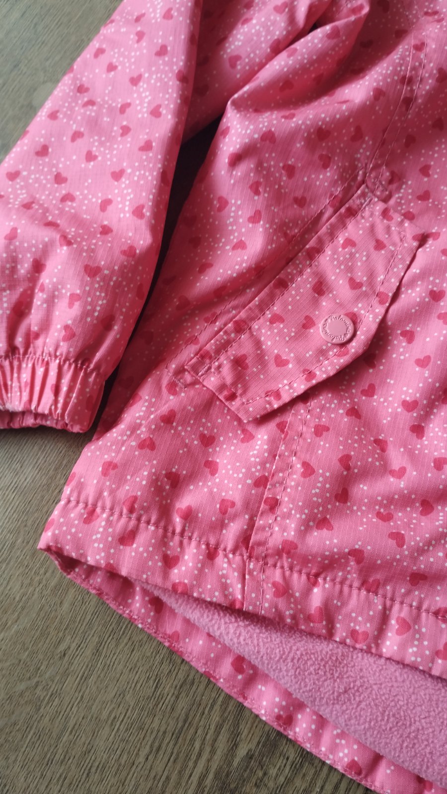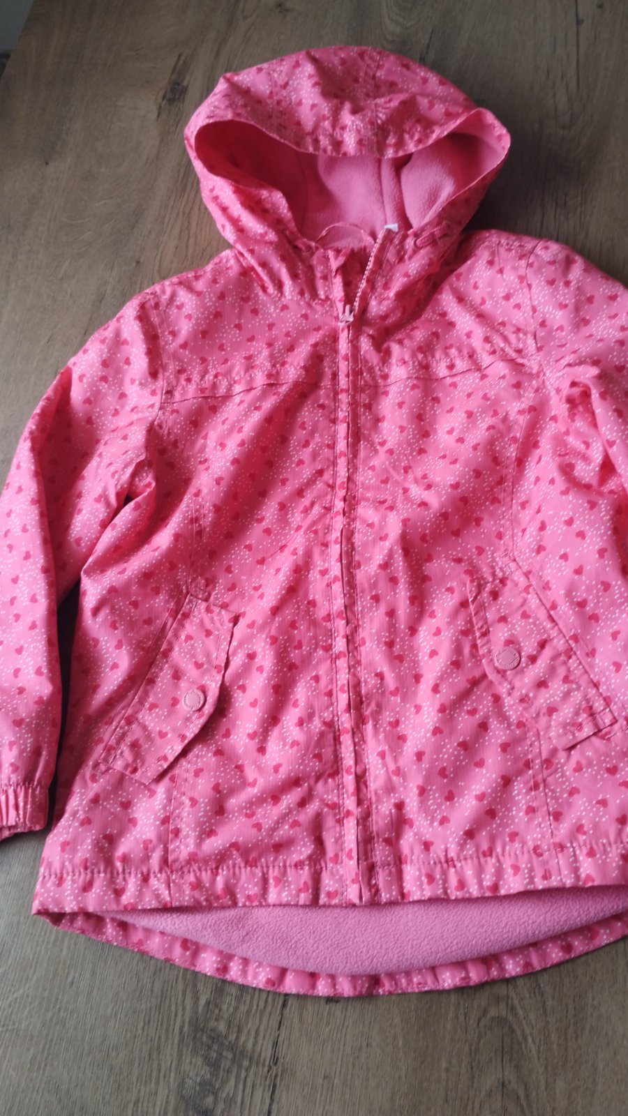 Bunda je veľkosť 128, ale nosili sme skôr- ako č.122. Už skôr na doma, na rukávoch je vidno nosenie.