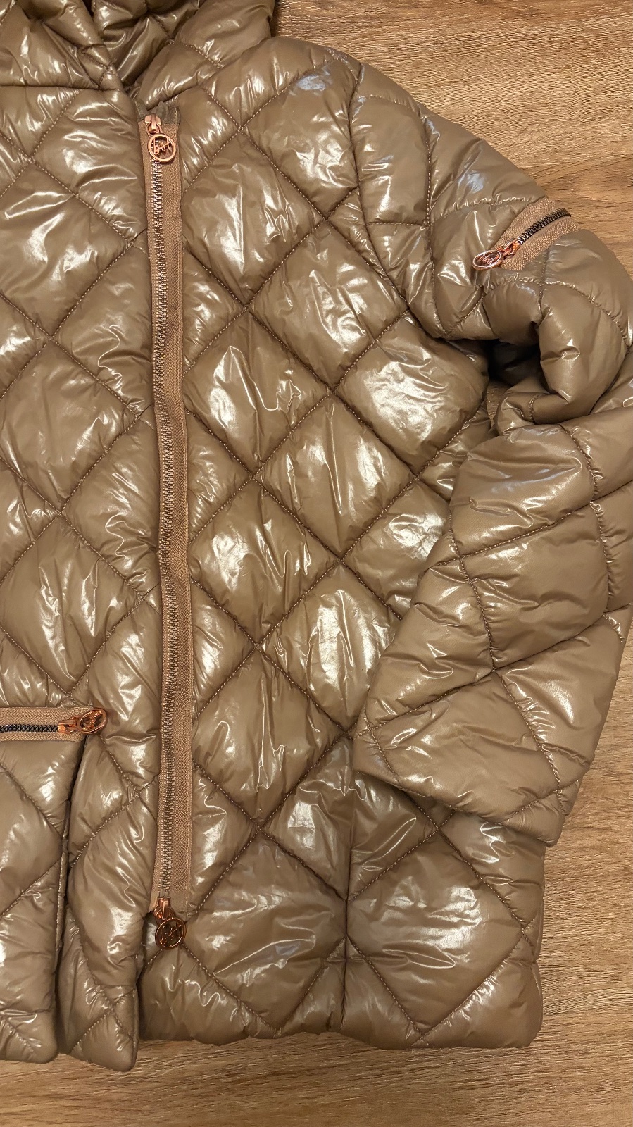 Metalická hnedá dlha bunda