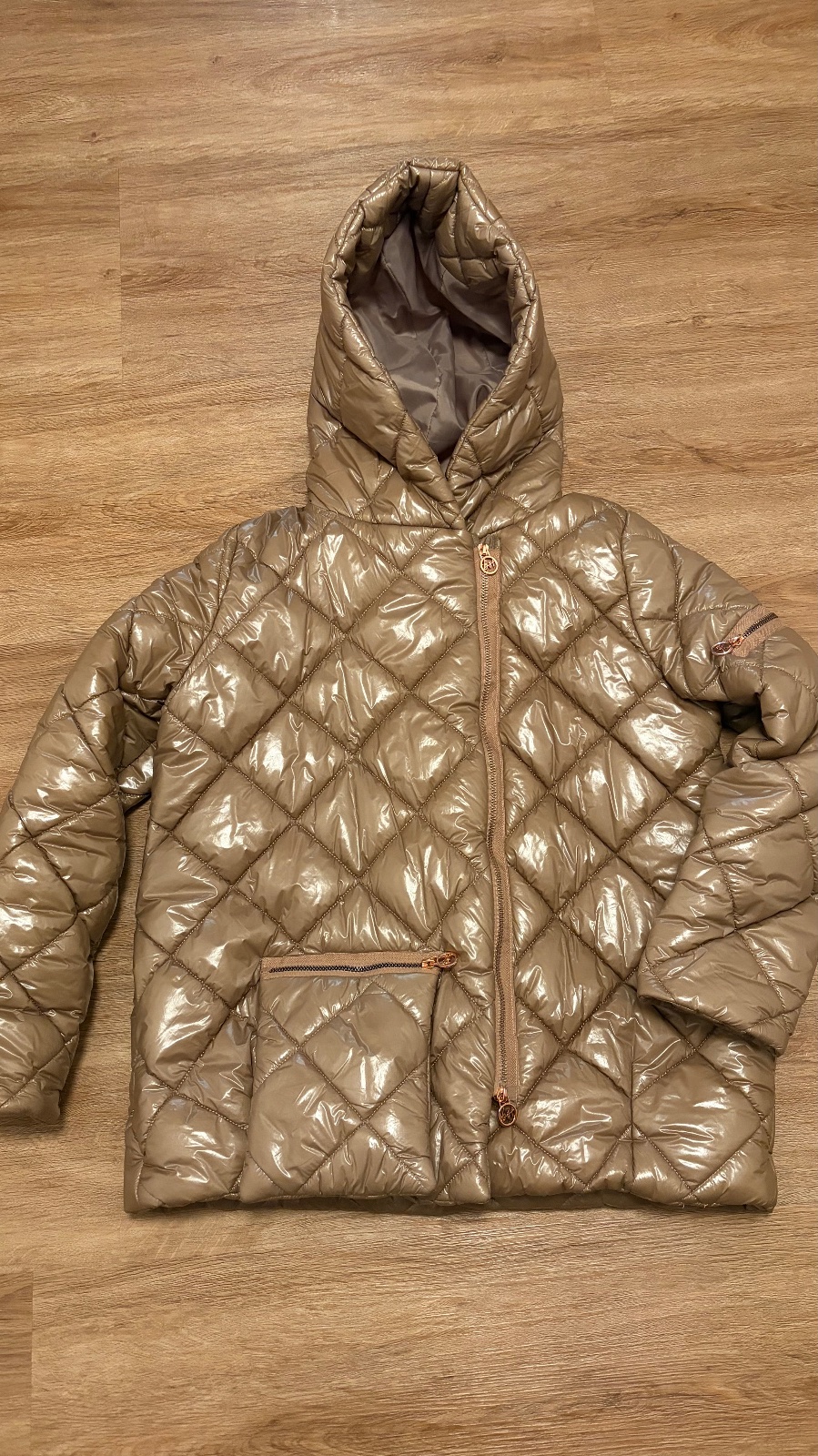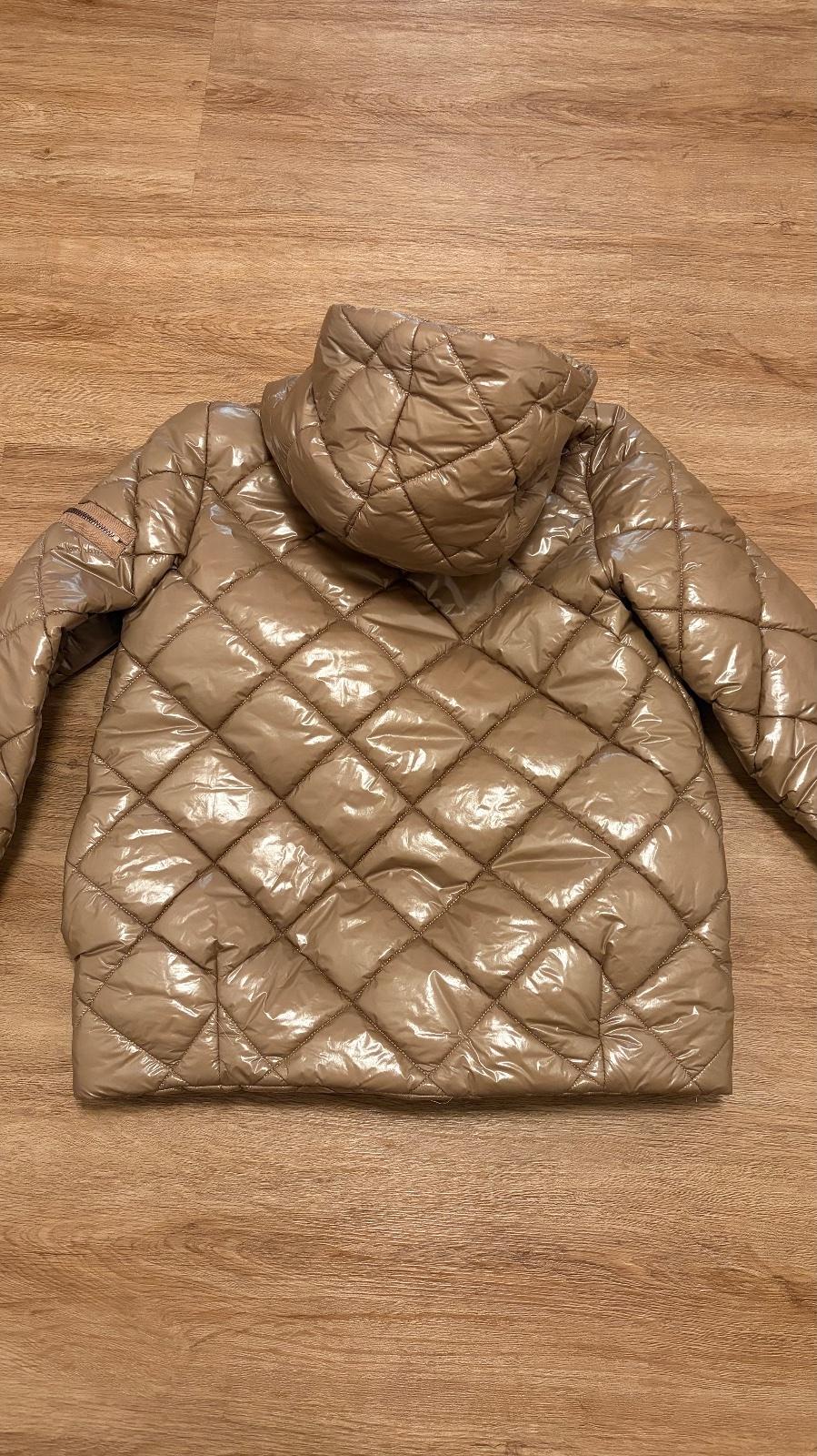 Krasna tepla bunda krásnej bledohnedej perleťovej farby Zara s umelou odnímateľnou kozusinkou na límci, velkost pisu XL ale skôr L. Treba sa riadiť rozmermi, šírka pod pazuchami je 51cm, celková d...