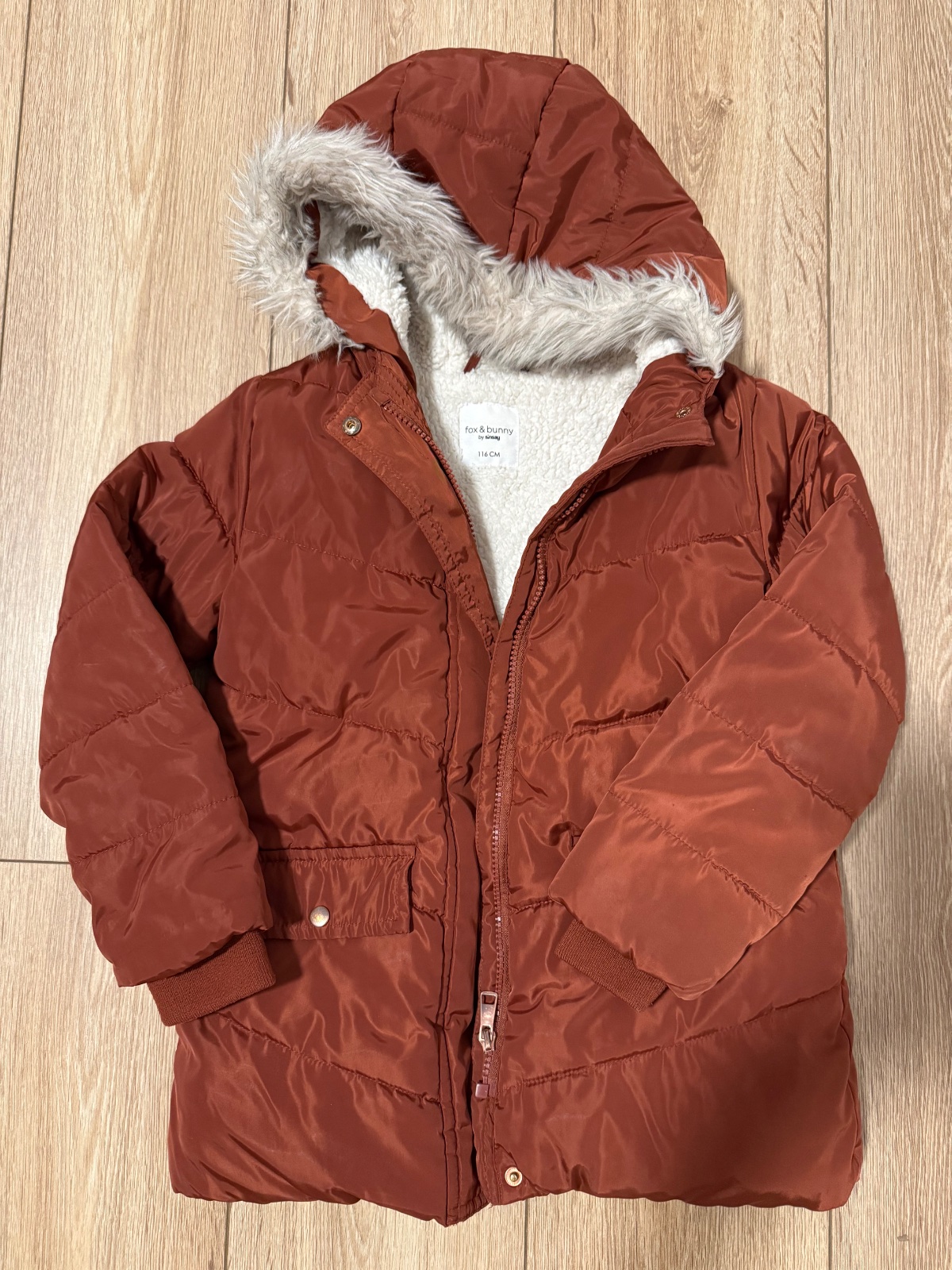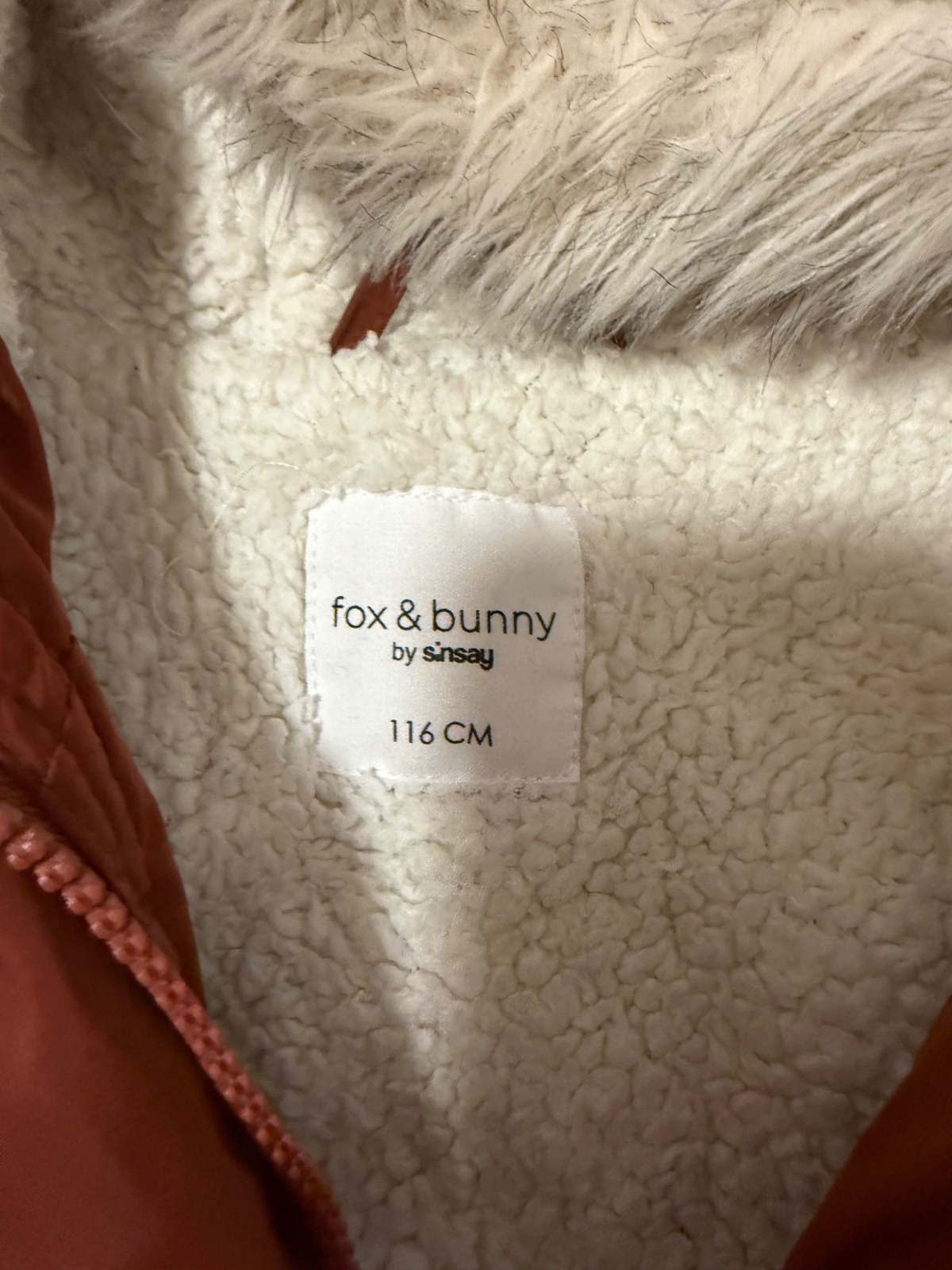 Teplá zimná bunda v tehlovej farbe,oblečené párkrát na striedačku s inými. Rozmery na foto. Dostupné 2ks vo veľkosti 116