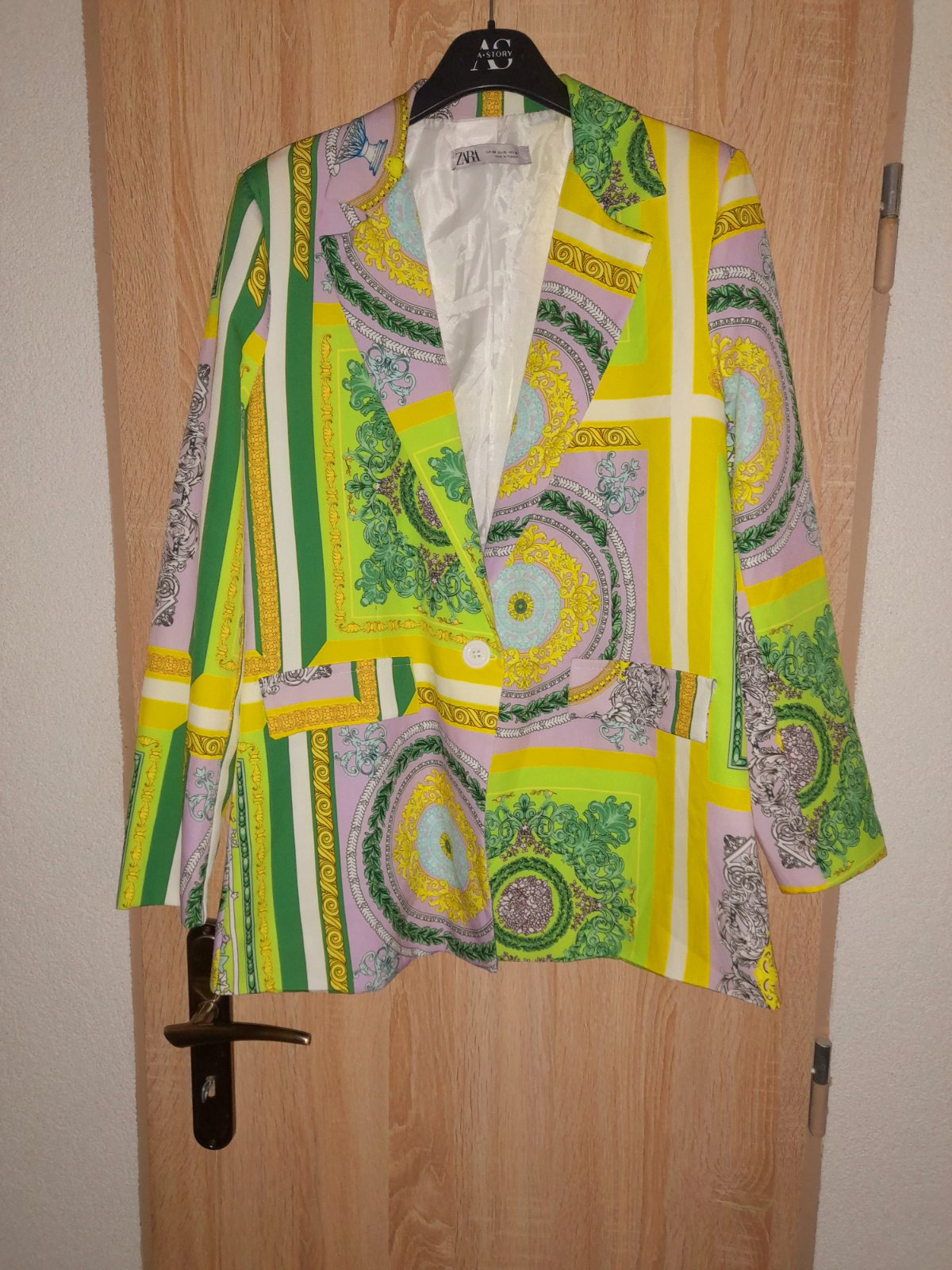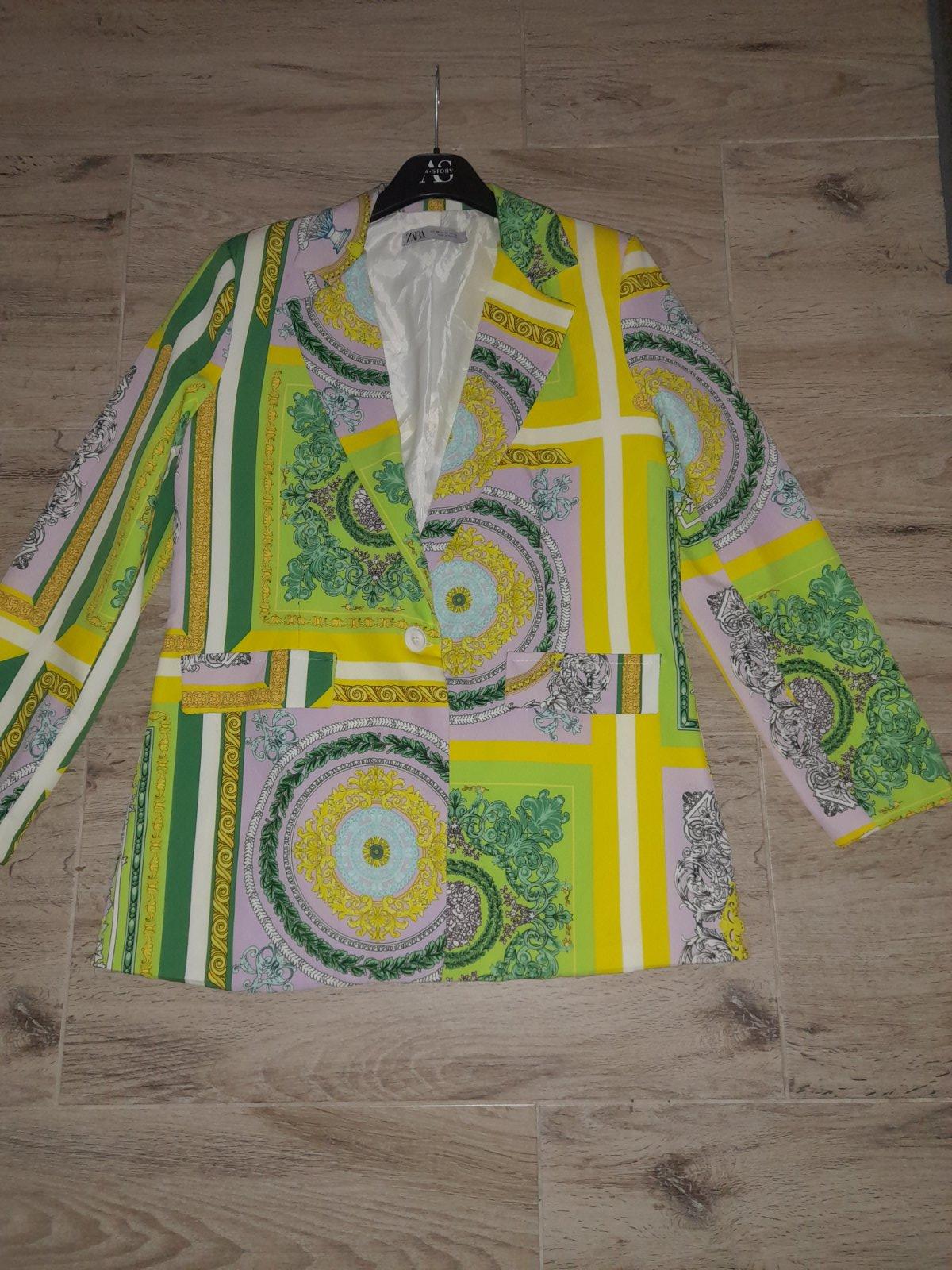 Predám krásne letné sako Zara,nosené,v super stave.Velkost písaná 40. Je podsite,zapínanie na jeden gombík.