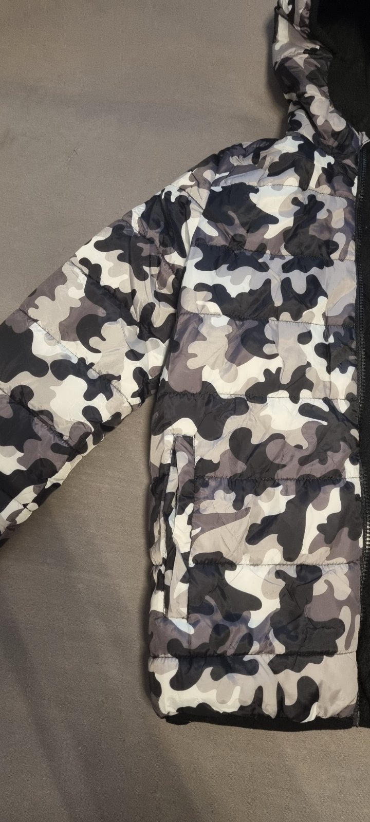 Krásna zateplená bunda na prechodné obdobie . Pokazený zips, nutne vymeniť
