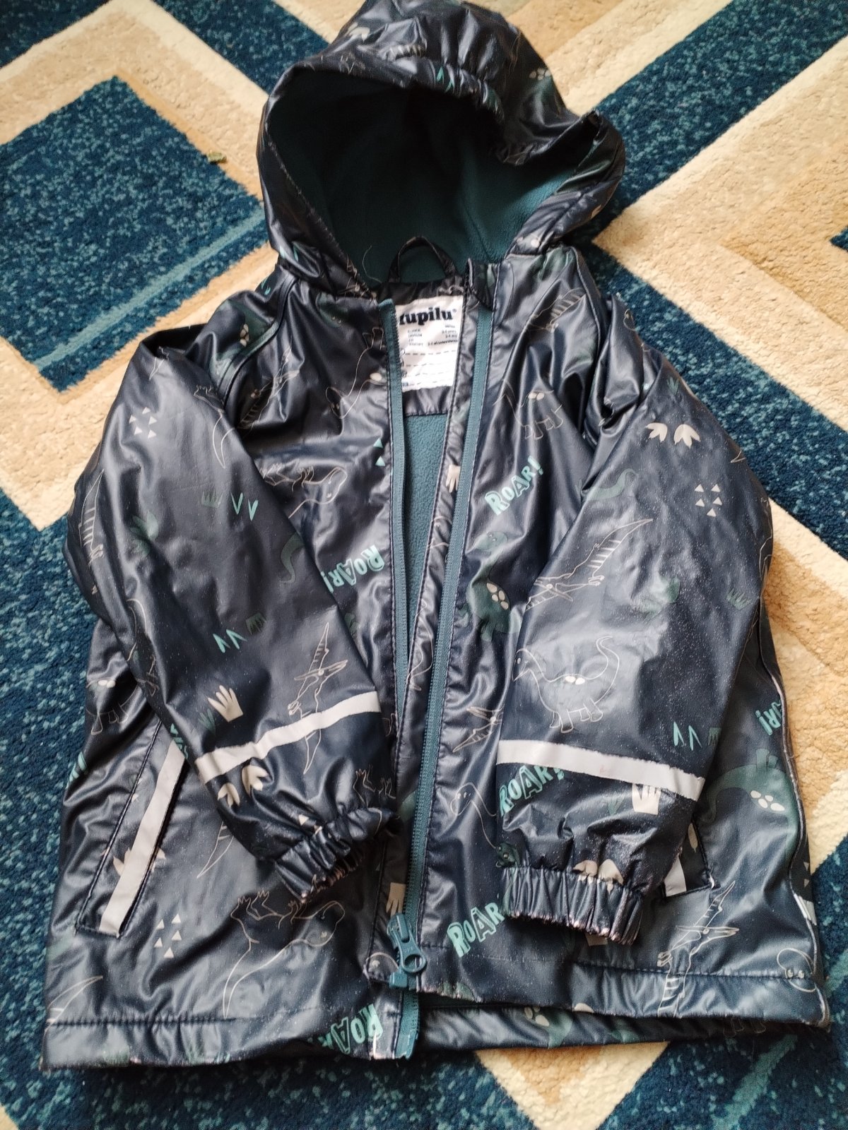 Chlapčenská zimná vetrovka, zateplená fleecom (aj kapucňa). Zapínanie na zips, vpredu sú dve vrecká. Na rukávoch sú všité patenty. Veľmi zachovalá, bez poškodenia.