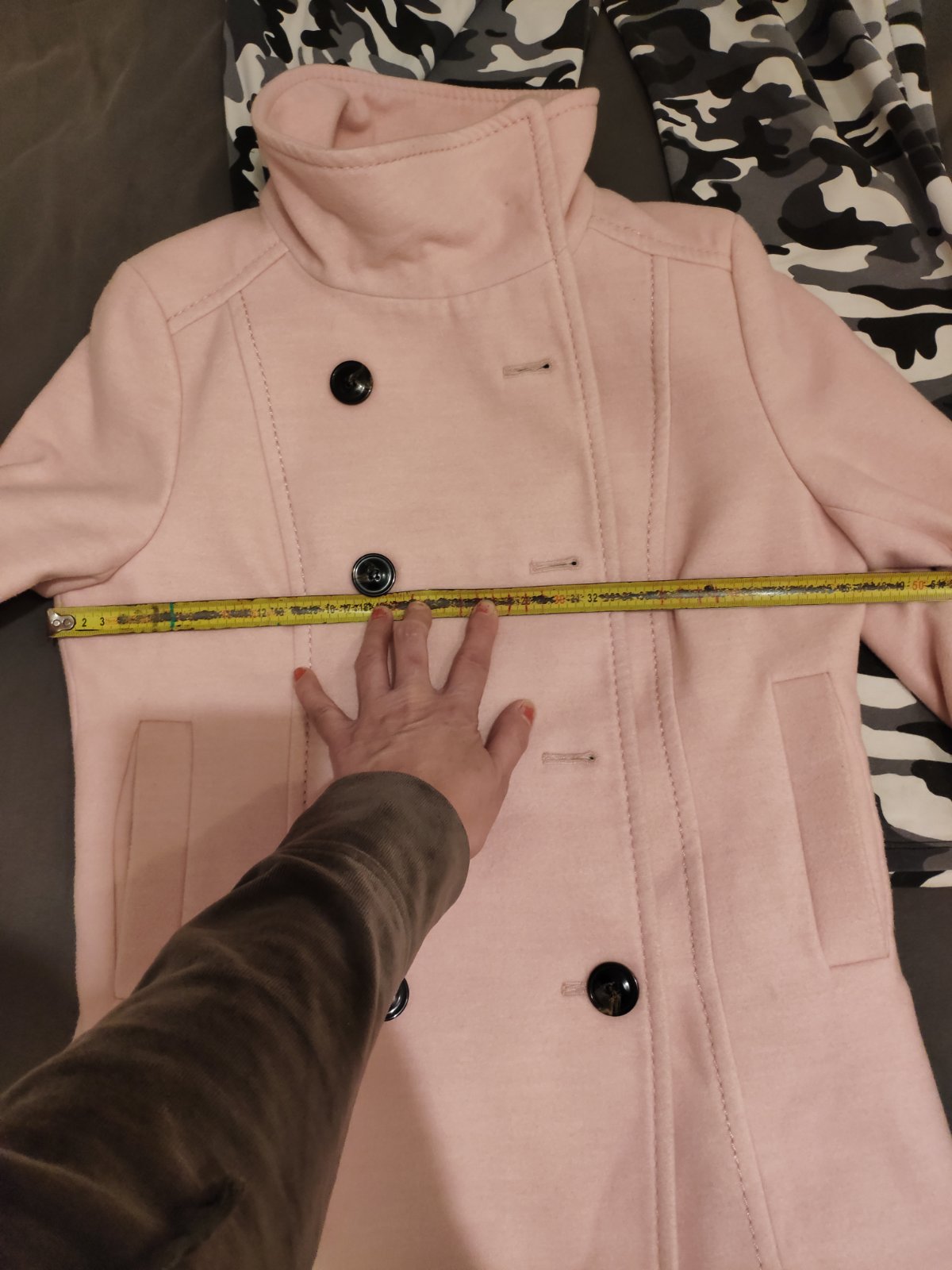 Elegantny kabát na denné nosenie - na fotke trošku pokrčené - s dvojitym zapinanim, značka H&M, bez poškodenia, žmolkov, flakov.