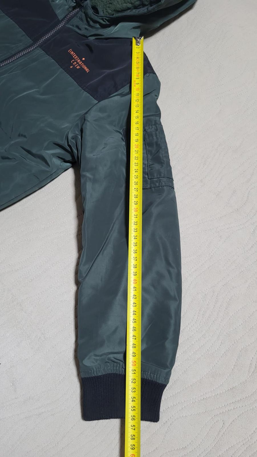 Bunda je bez poškodení.kapucňa sa dá odopnút.dlzka meraná od ramena 63cm,rujáv meraný od krku 63cm,rukav merany od ramena 53,5cm,rukáv merany pod pa41cm,pazuchou,obvod 46x2