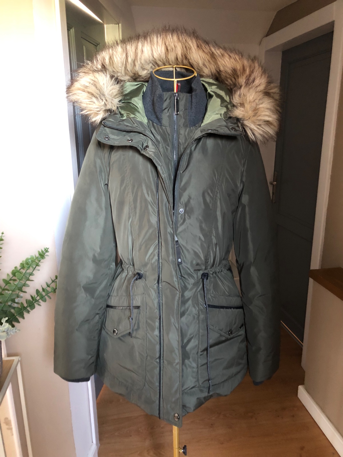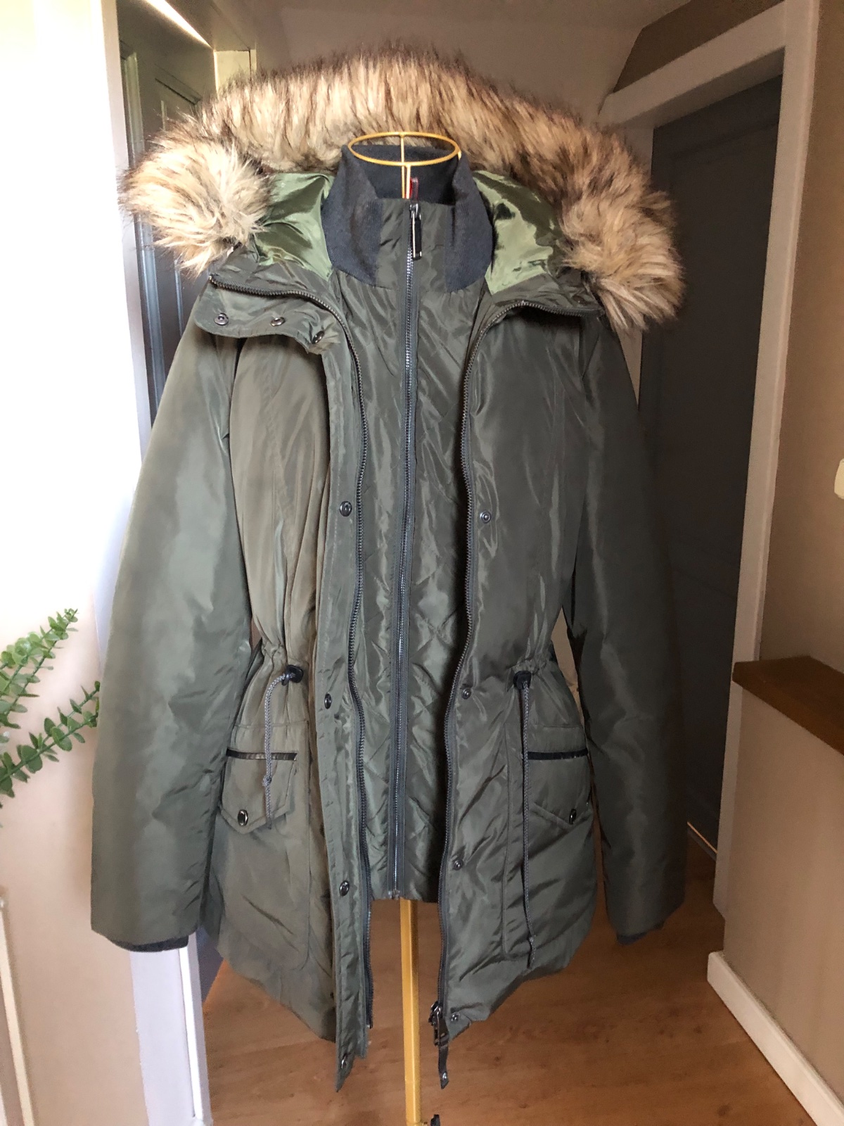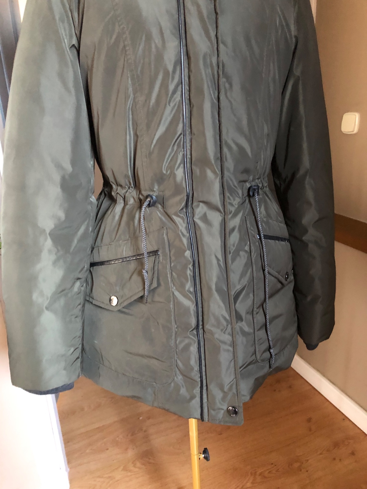 Kvalitná zimná bunda, dvojité zapínanie, ako nová, len suchnutá koženkovým na vrecku.