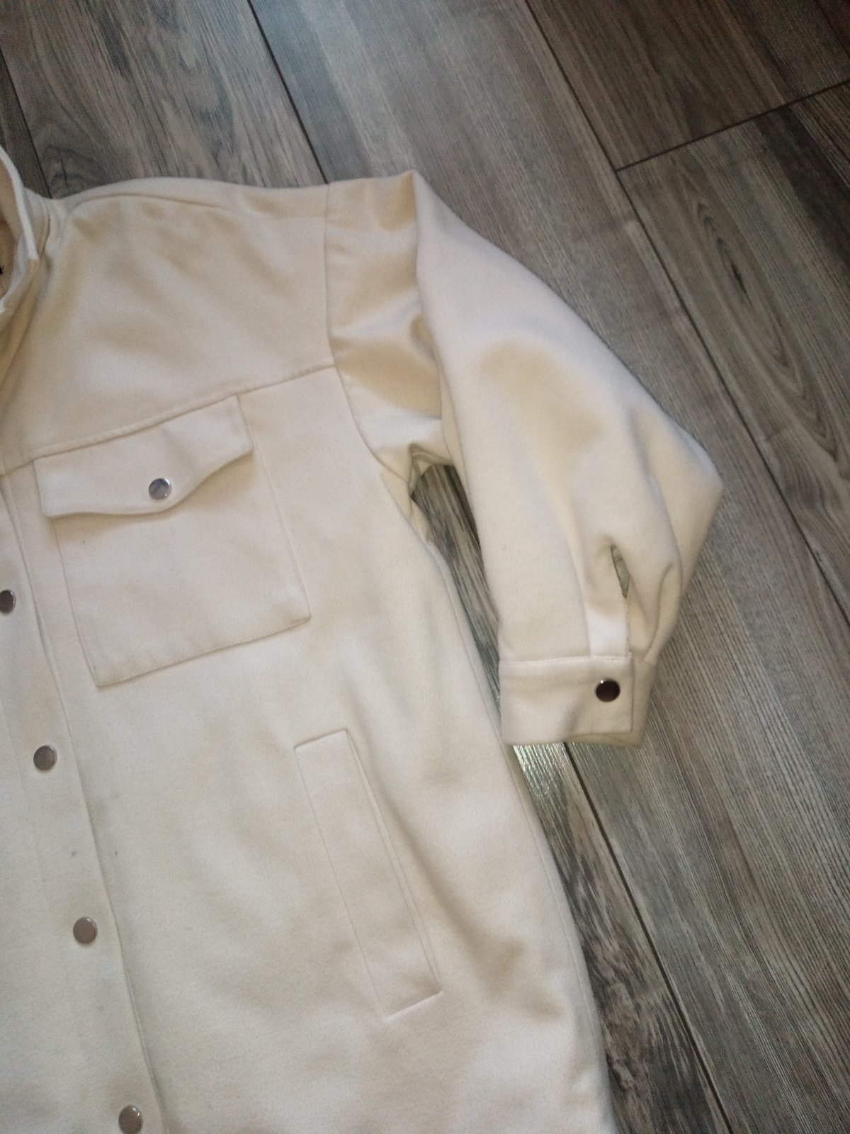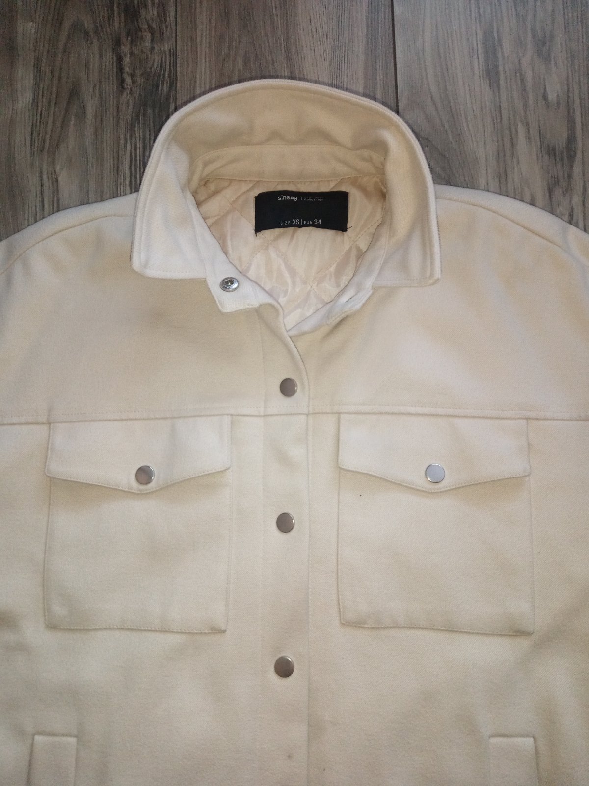 Bunda zachovala, podsita, šírka popis pazuchami 58 cm, je na nej aj malý fliacik, medzi 4-5 gombíkom, neskúšala som čistiť nejak špeciálne, možno pôjde dole. Odfotené bližšie na poslednej fotke.