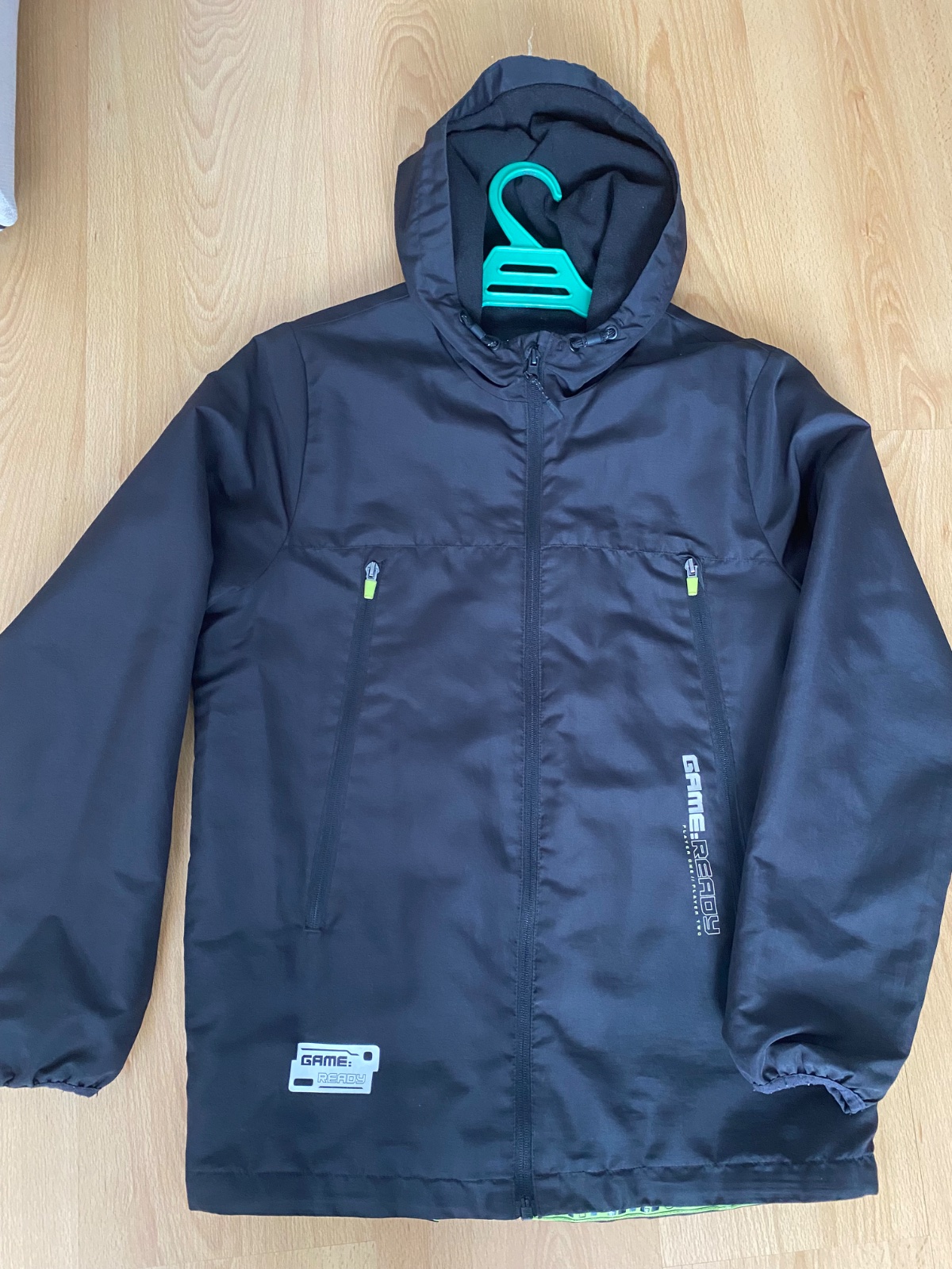 Oblečená asi raz, čiže ako nová. Má vrecká, kapucňu a dá sa zložiť do vrecúška. Mám 2 farby. Dĺžka vzadu 69 cm, v predu 67 cm, šírka pod pazuchou 52 cm, rukáv od krku 69 cm.