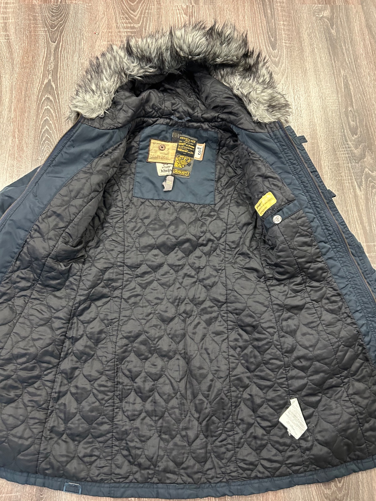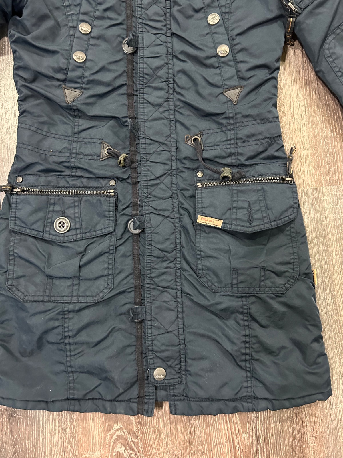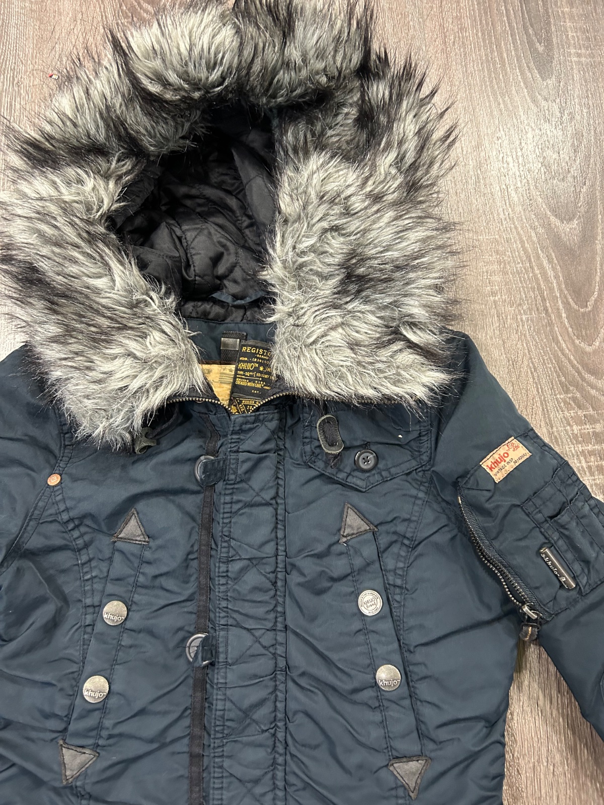 Khujo damska zimna vetrovka v super stave,ako nova,velkost S,premakana do posledneho detailu,kozusinka na kapucni sa da dat dole…dlzka je 86cm,dlzka rukava od krku je 75cm a sirka v podpazusi je cca 46x2cm,farba tmavošeda