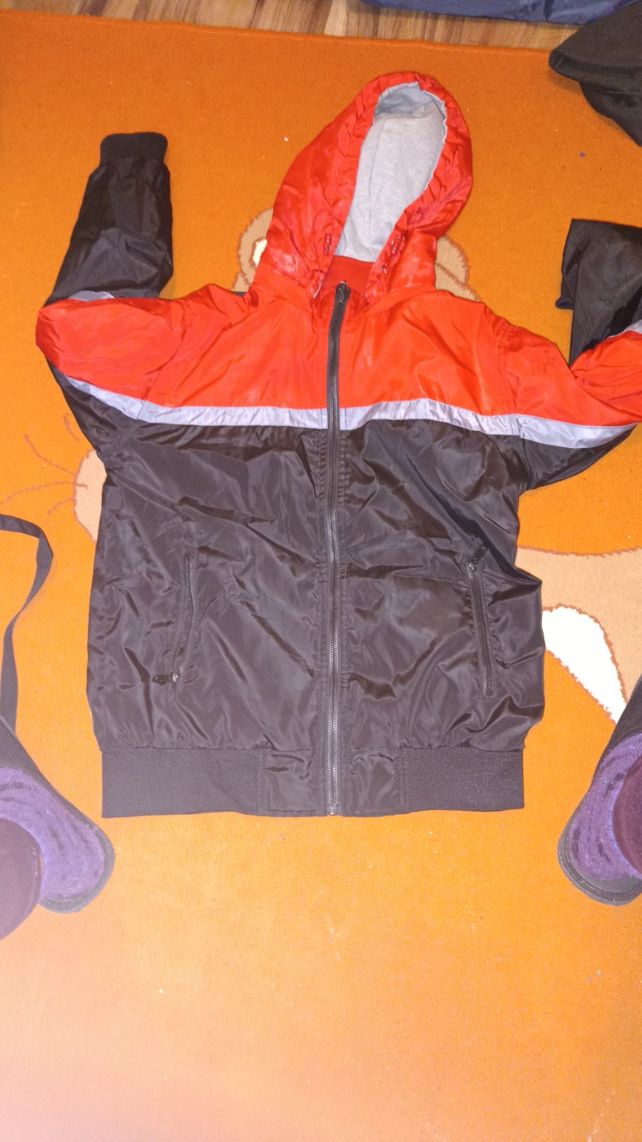 Obojstranná vetrovka s reflexnými prvkami, odnímateľná kapucňa. Nevynosena, len pár raz.