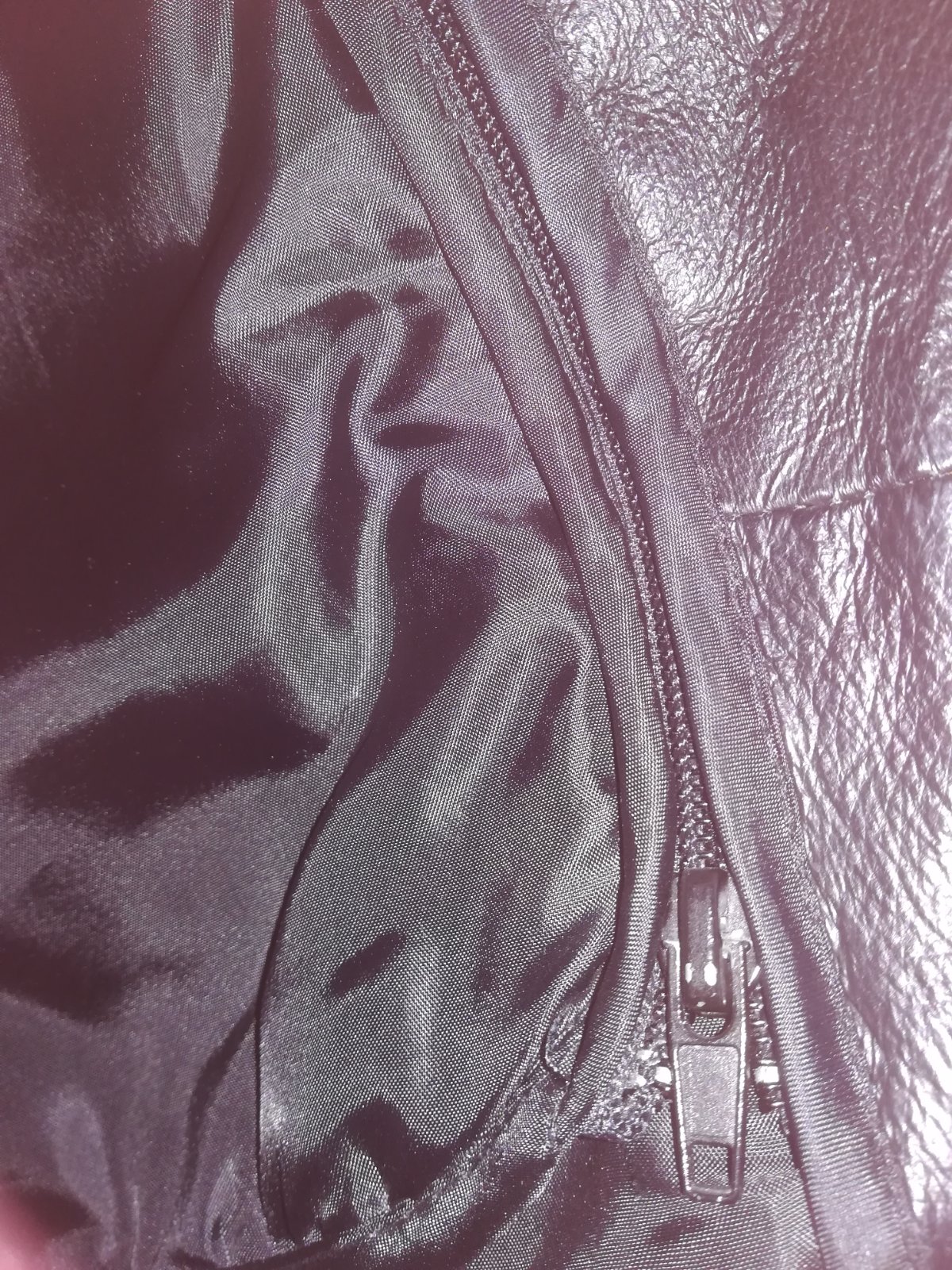 Panska kozena bunda, par krat oblecena, s odopinatelnym futrom na chladne dni. Vrchny gombik treba lepsie prisit.