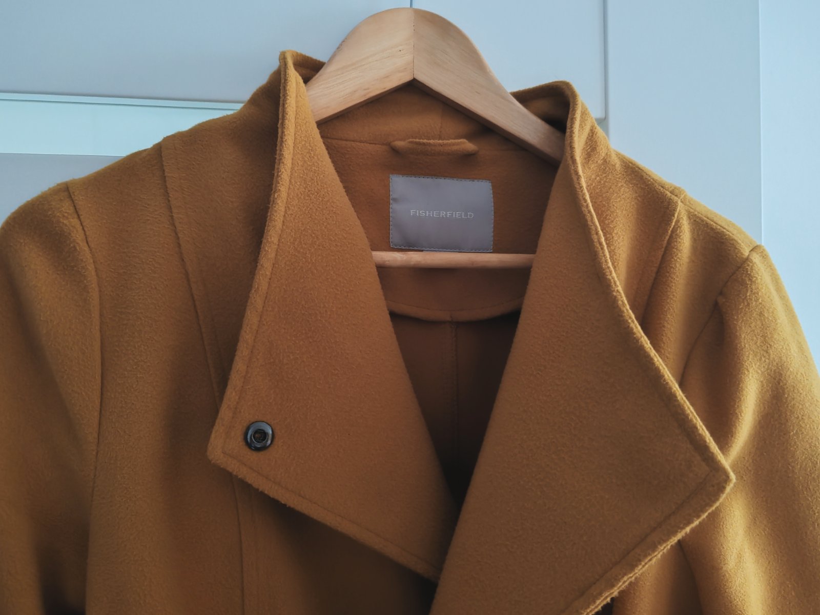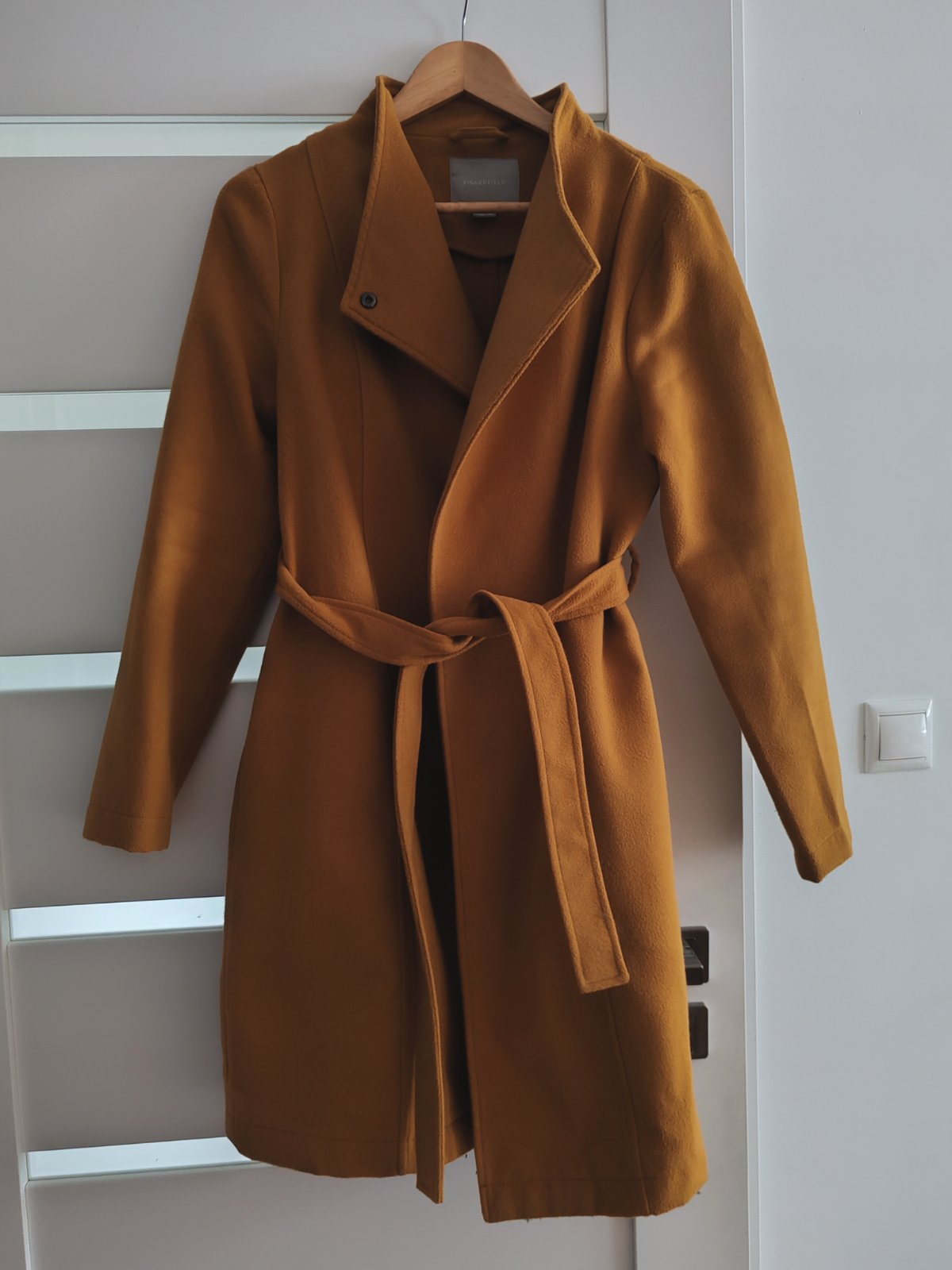 Krásny flaušový kabát horčicovej farby zn. Fisherfield, veľkosť M, nosený, ale super stav bez poškodení, bez žmolkov. Farba je ako na poslednej foto. Plus pošta podľa cenníka (dá sa poslať len ako balík).