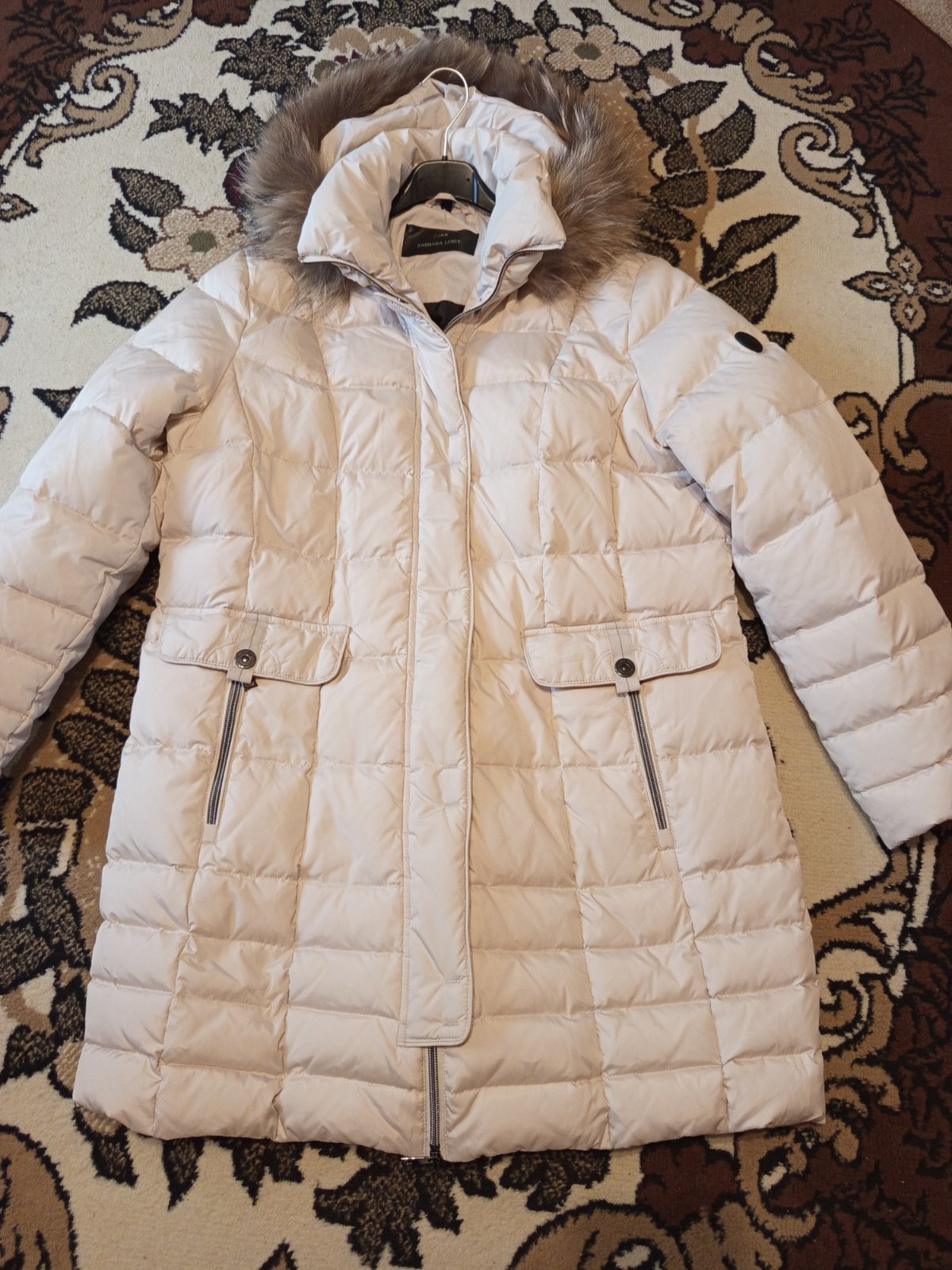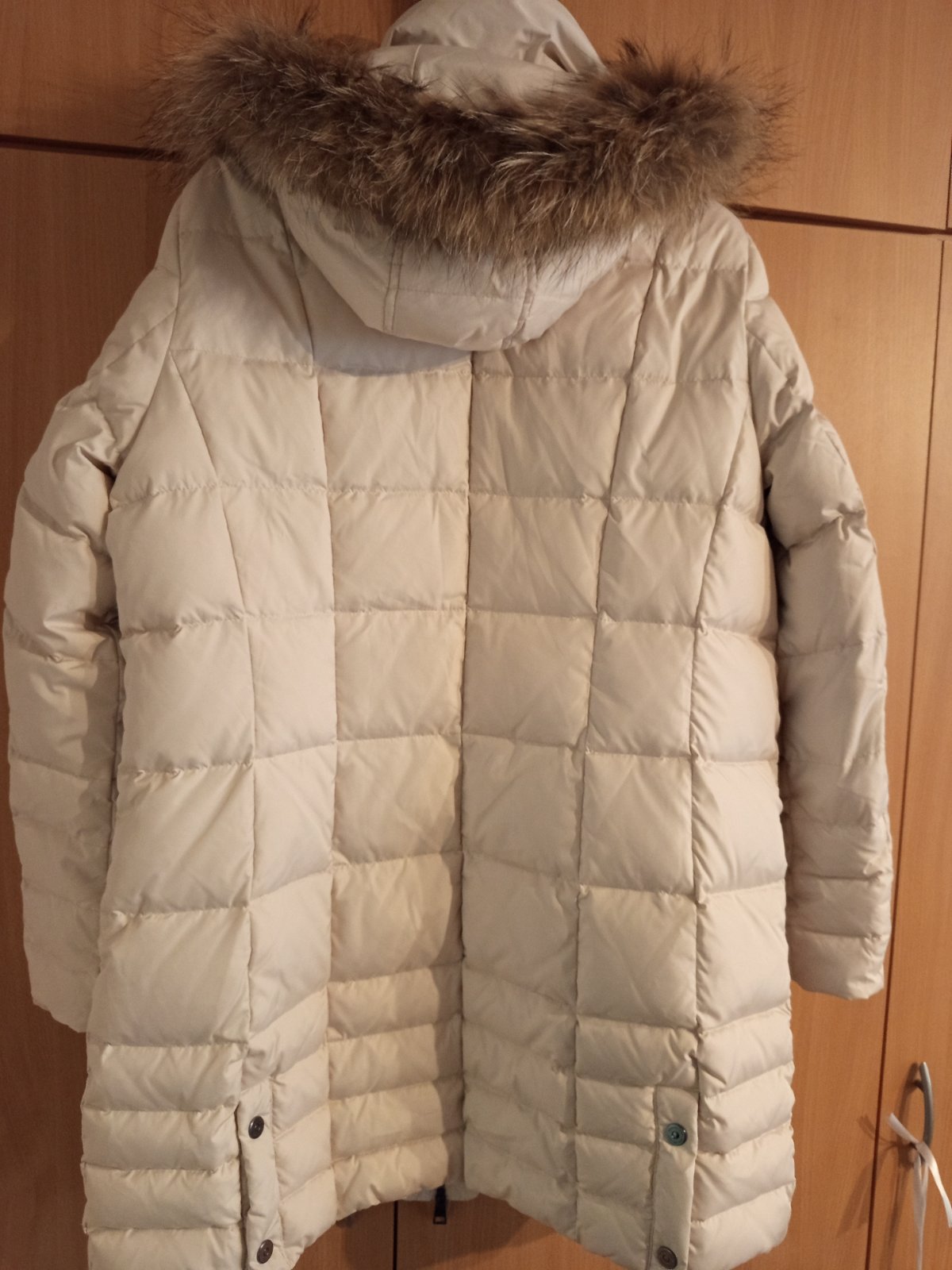 Luxusná zimná bunda béžovej farby s decentným leskom, zapínanie zips a légu s cvočkami, materiál 85% polyester, 15% nylon, super stav....farba, ako fotke s figurínou. šírka v podpazuší 57x2 cm, pá...