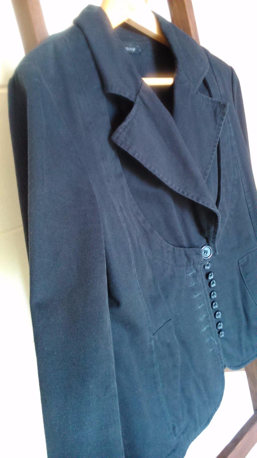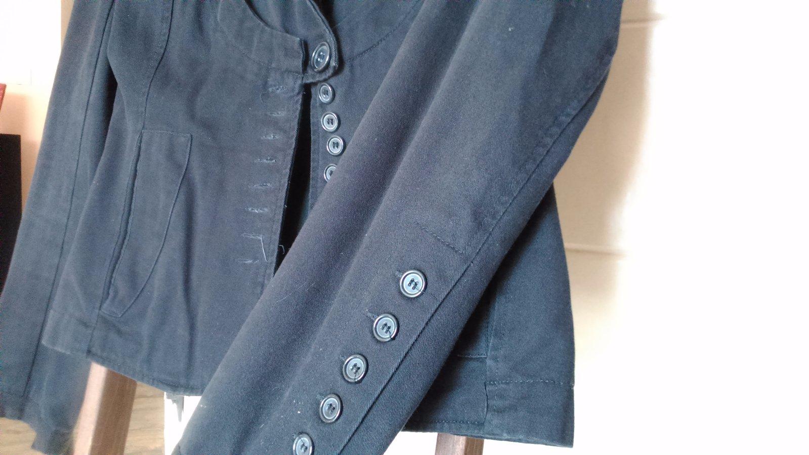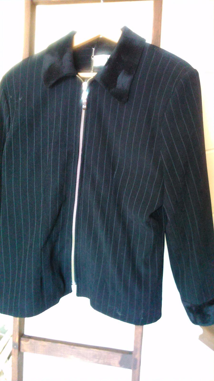 druhé sako čierne s pásikom, zapínanie na zips,ten je zlatistej farby, sako je nosené ale v 100 % stave. Mne je malé..