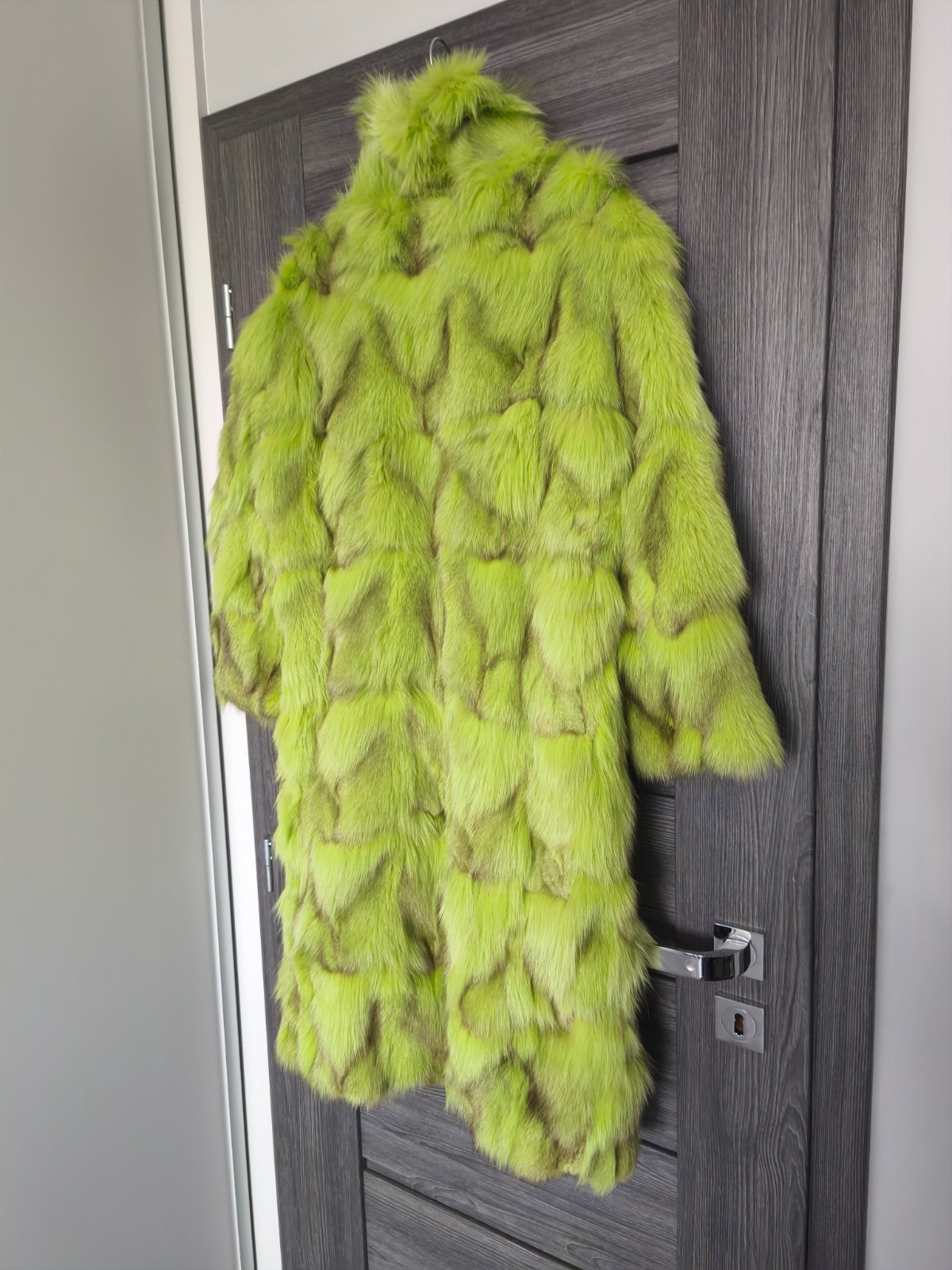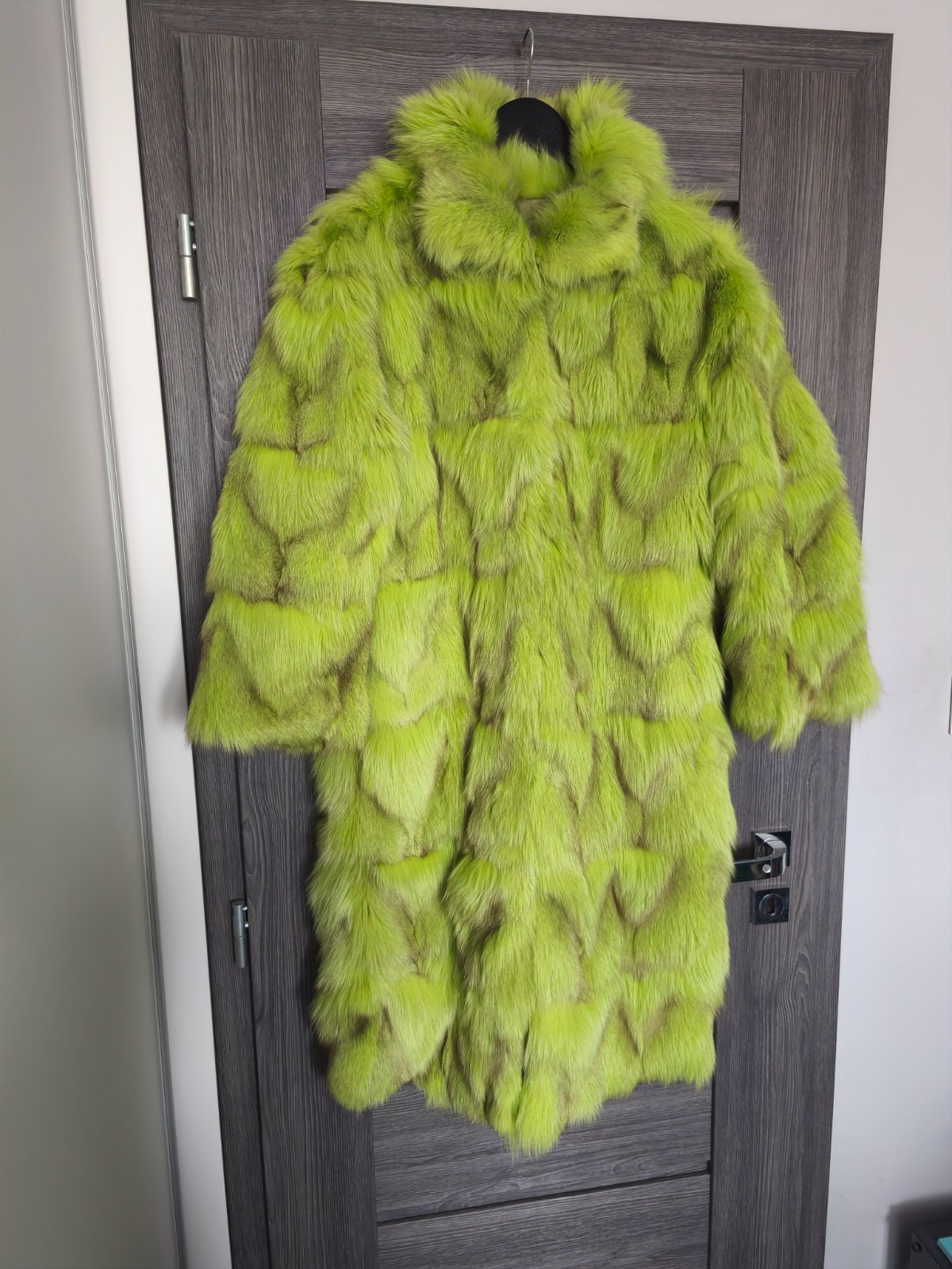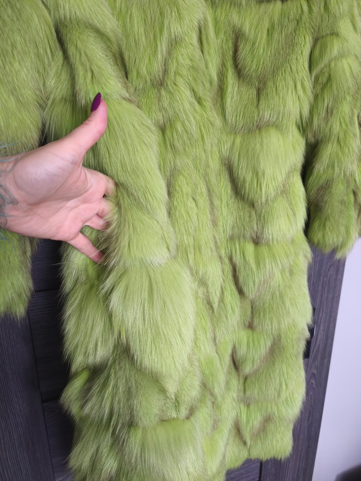 Uplne novy nadherny pravy kozuch z finskej lisky z dielne Sandra Stepanek, farba krasna pistaciovo-zelena nazivo krajsia ako na fotke nie tak ziariva, luxusny neprehliadnutelny kusok uplne novy nenoseny najlepsie sedi na S/M ma vrecka zapinanie je na haciky az ku krku. Povodna cena cez 900€.