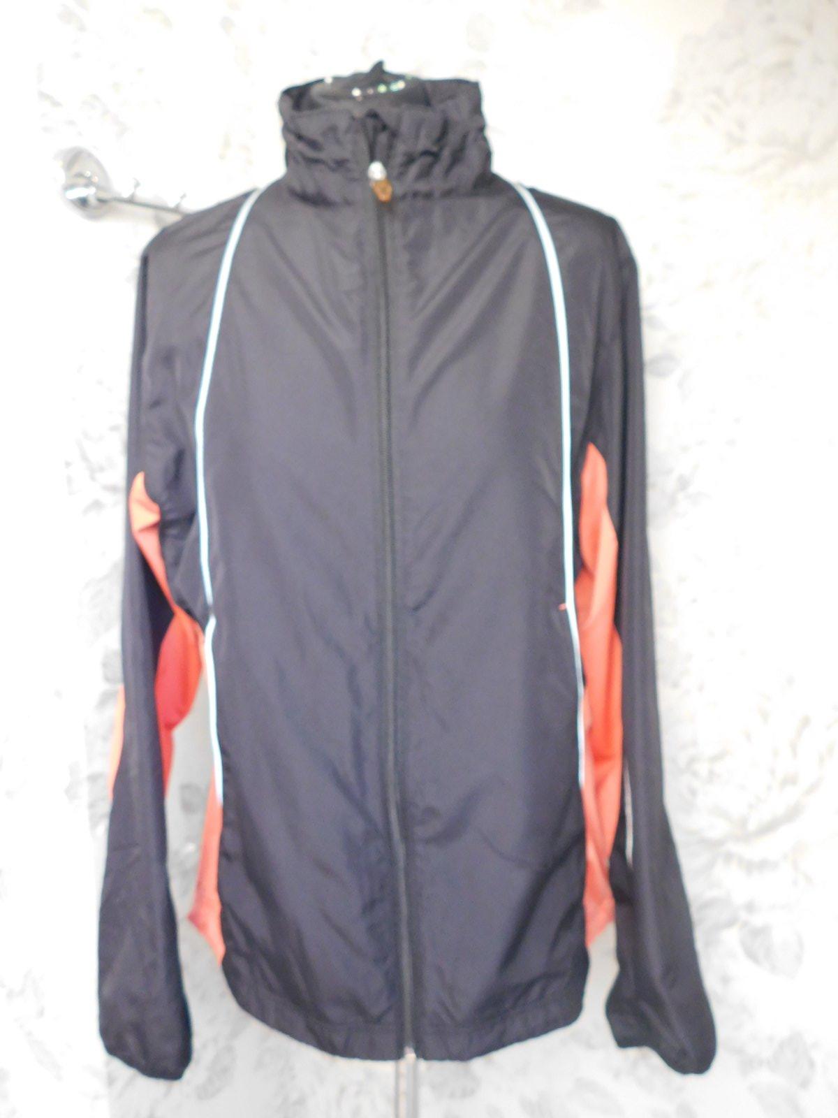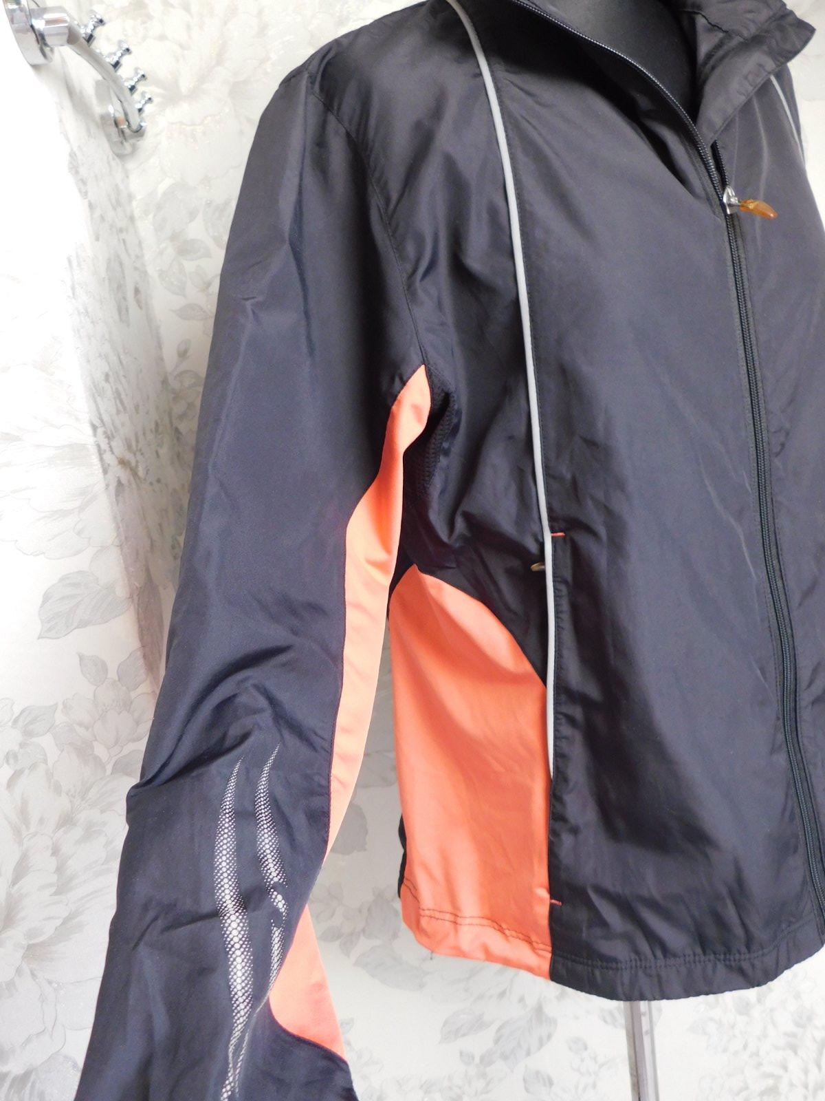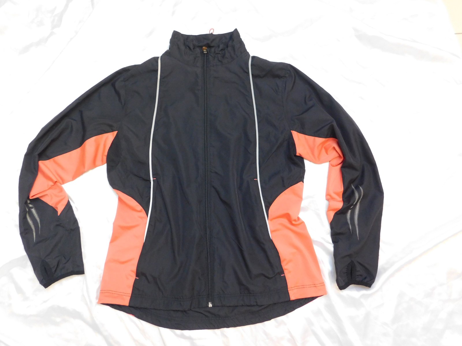 SOC Damska kvalitna športova bunda/vetrovka,čierno/lososovej farby,reflexne pasiky.100%polyester.super stav. se36