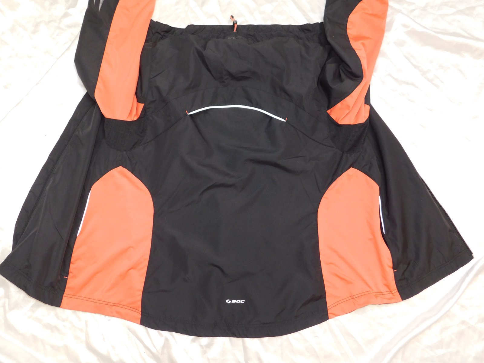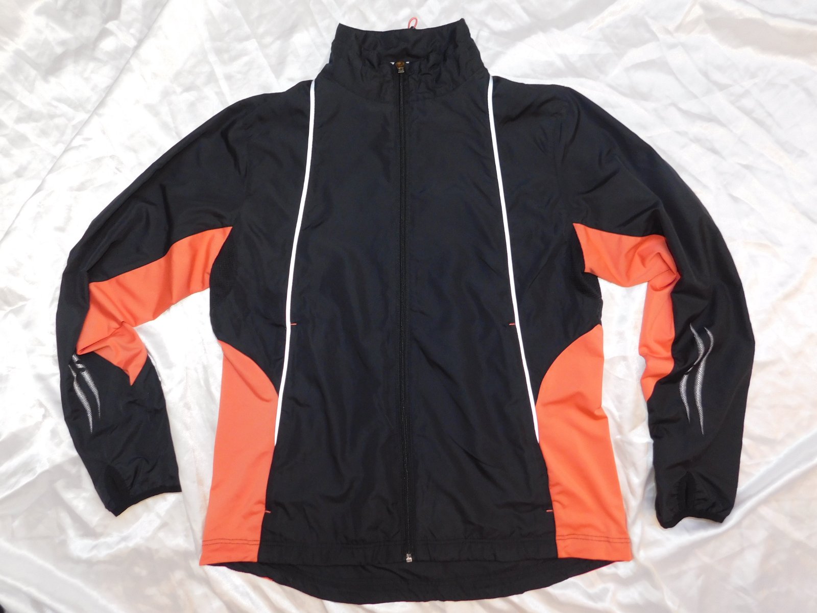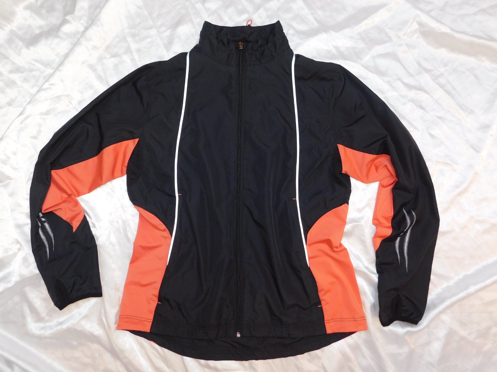SOC Damska kvalitna športova bunda/vetrovka,čierno/lososovej farby,reflexne pasiky.100%polyester.super stav. se36