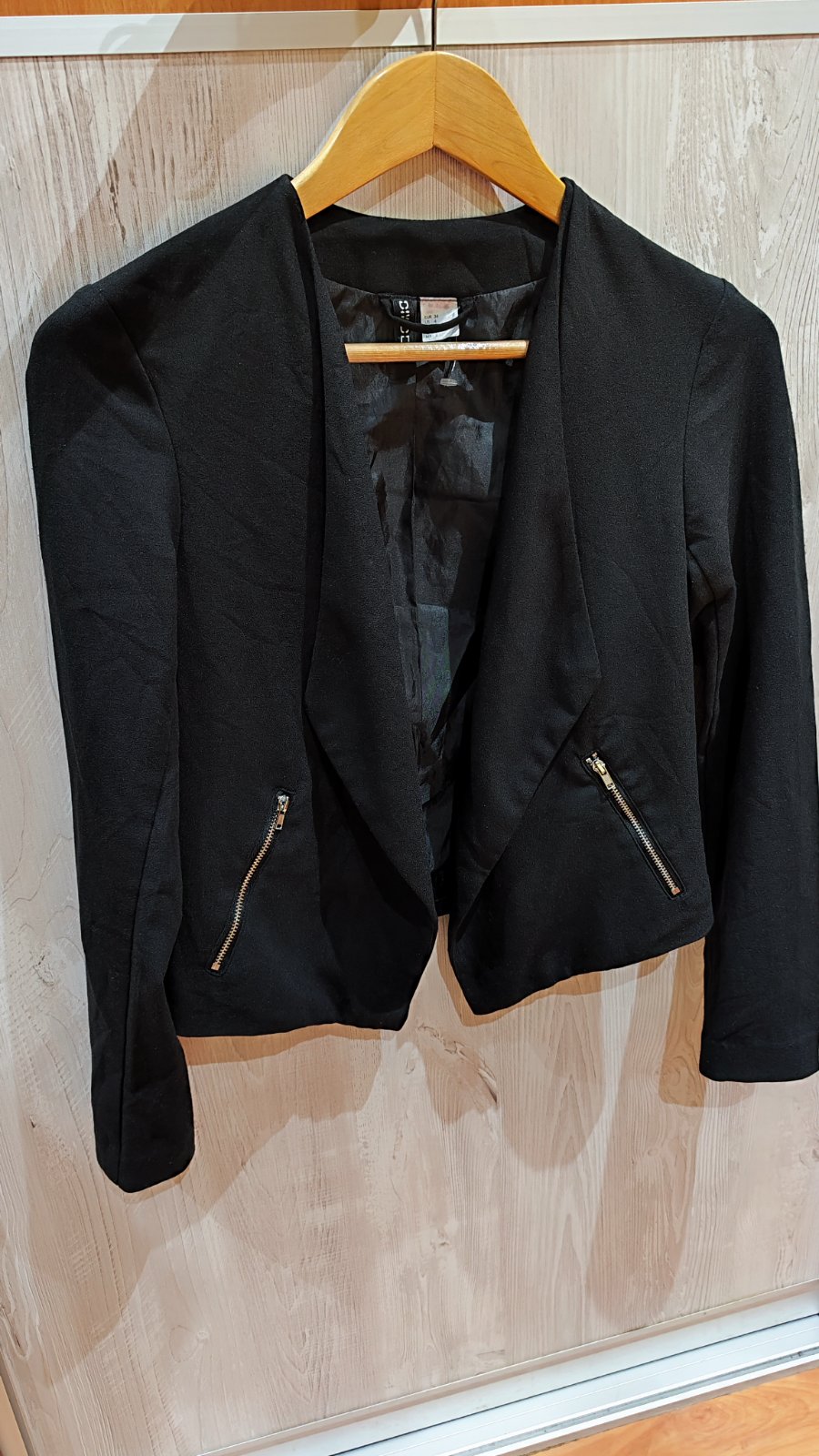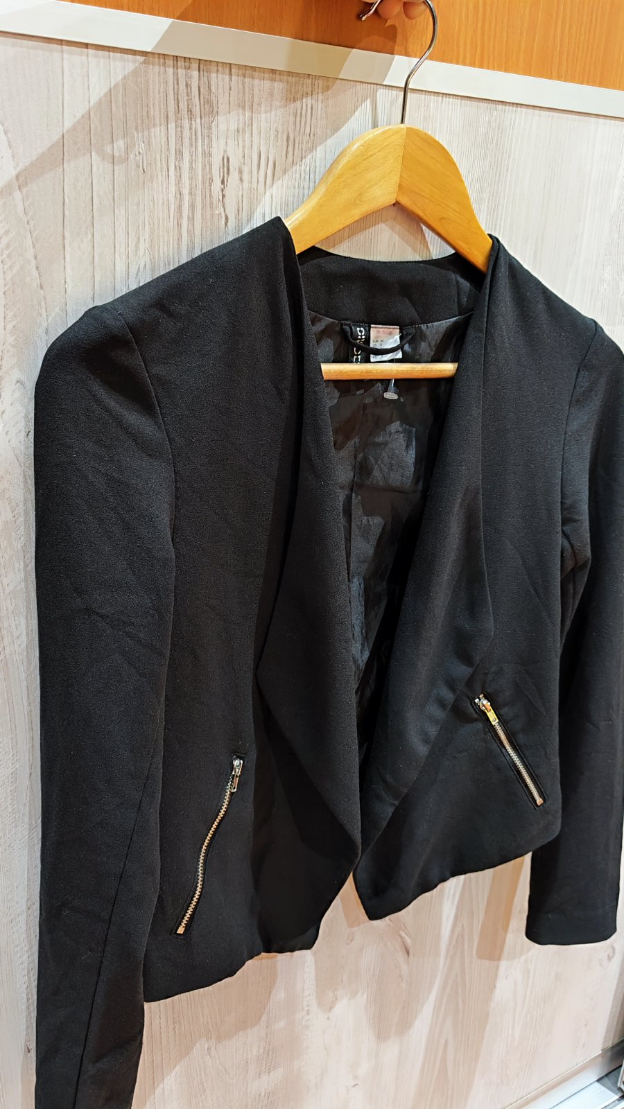 Tenšie čierne sako, veľkosť písaná 34 (sedí na xs).