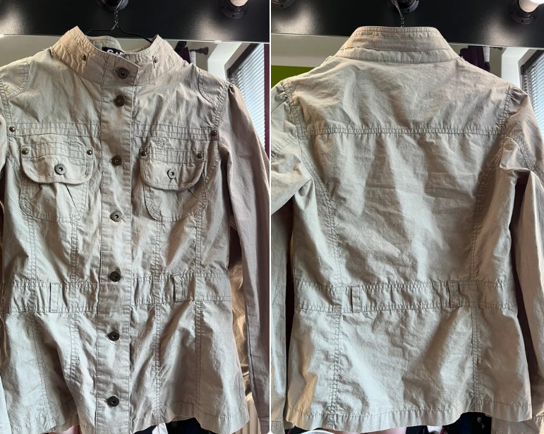 Štýlová prešívaná jarná/jesenná bundicka, veľkosť S, veľmi dobre sita a prepracovaná. Funkčné všetky vrecka, patentové rukávy, na zips a cvocky. Zapnutie az ku krku. Farba oliva, vojenská zelena. ...