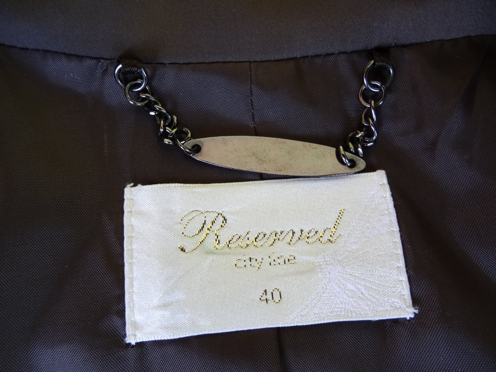 Tmavohnedé sako zn. Reserved, veľ. 40/M, rozmery: dlžka 60cm, pod pazuchami 2x46cm, rukáv 63/46cm.