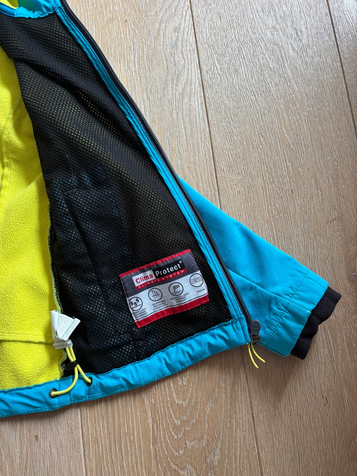 Pekny noseny stav s par chybickami, ktore nevadia noseniu a fukncnosti - vid foto - malé bodky - odreta vrchna latka, male fliaciky na dvoch miestach, na foto az neviditelne (pod svetlom alebo s okuliarmi😊), na spodu rukavov osuch na vrchnej latke.