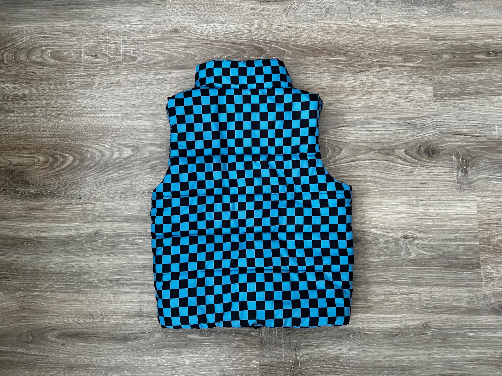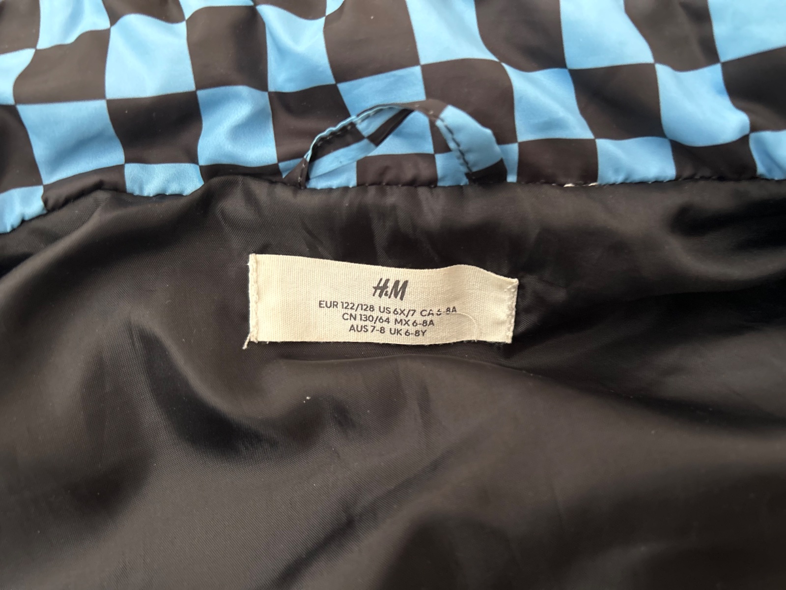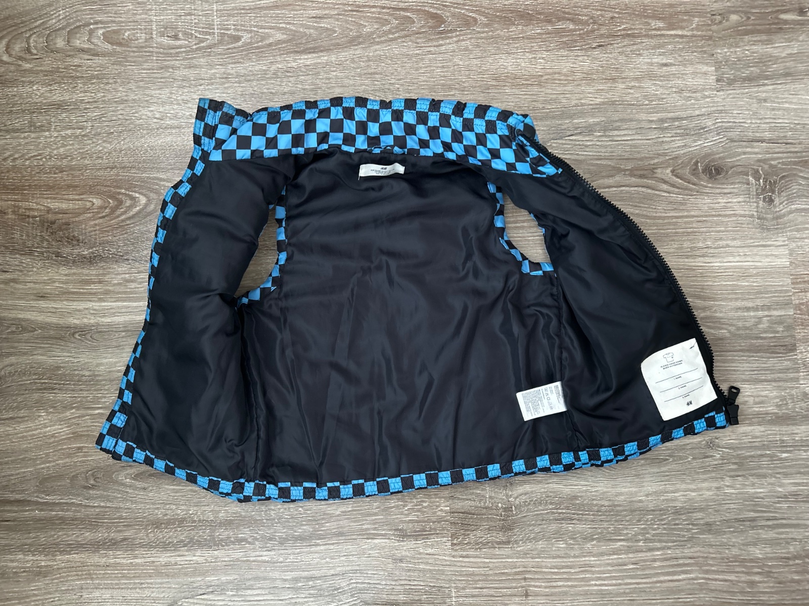 Zateplená vesta H&M v. 122/128, farba kríšovská modrá v kombinácii s bledomodrou, v peknom nosenom stave, bez poškodenia. Miery: dĺžka od krku dolu: 43cm, vzadu cez stred cca 5cm dlhšia, šírka: 3...
