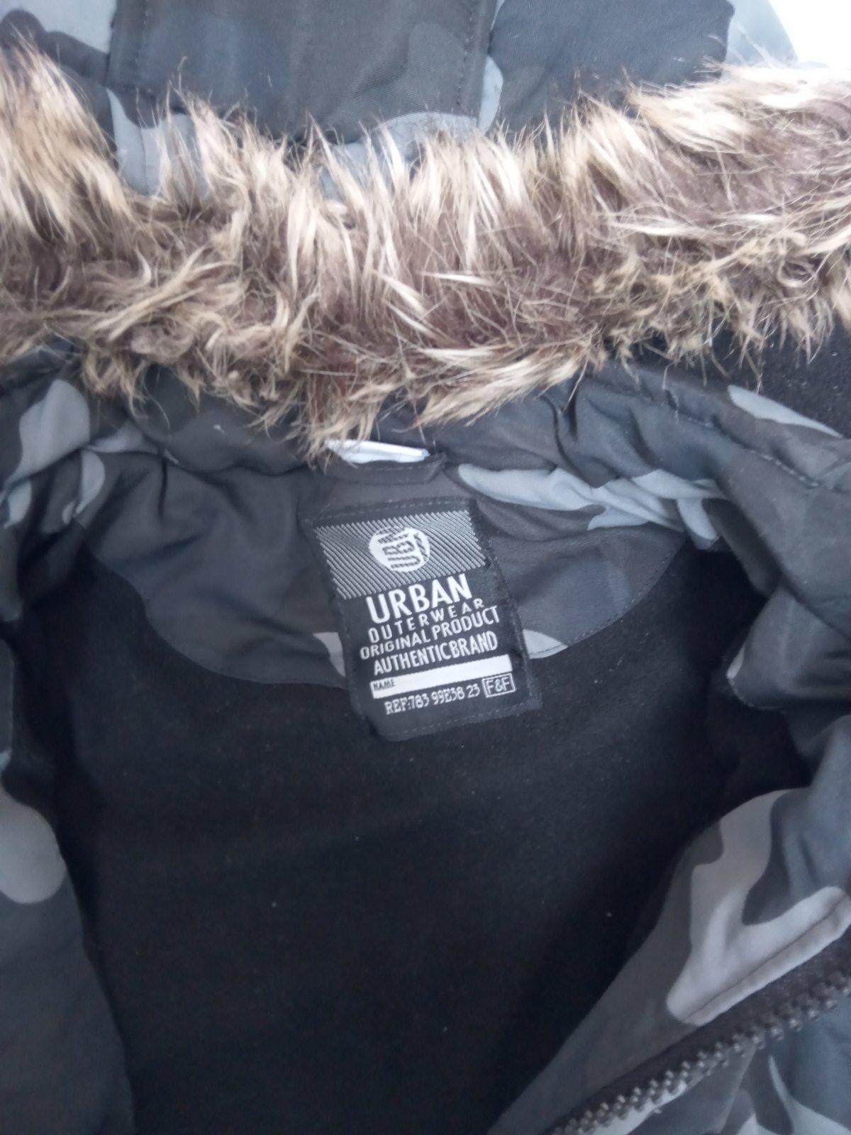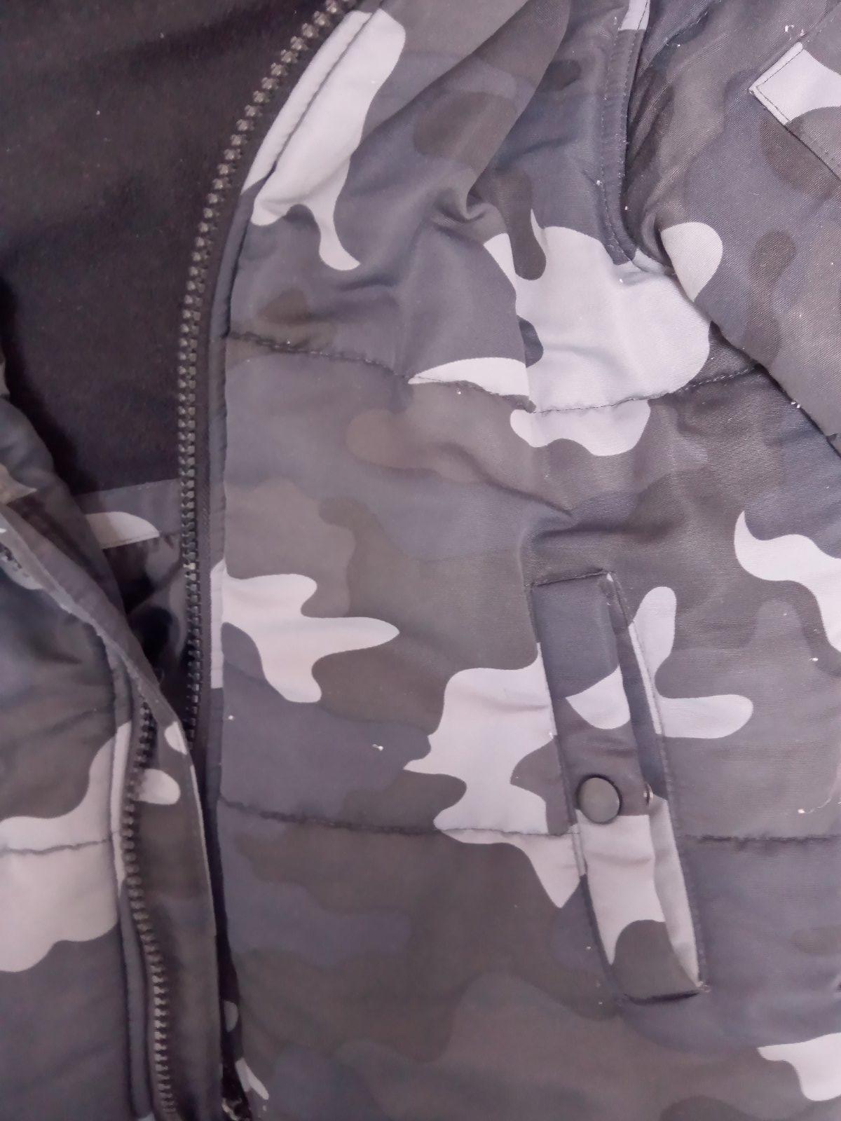 Chlapčenská bunda, vo veľmi dobrom nosenom stave, pevná kapucňa, vrecka na bokoch, náprsne vrecko a vrecko na rukáve, veľ. 146/152. Dĺžka: 64 cm Šírka: 52 cm Dĺžka rukáva od goliera: 68 cm cena: ...