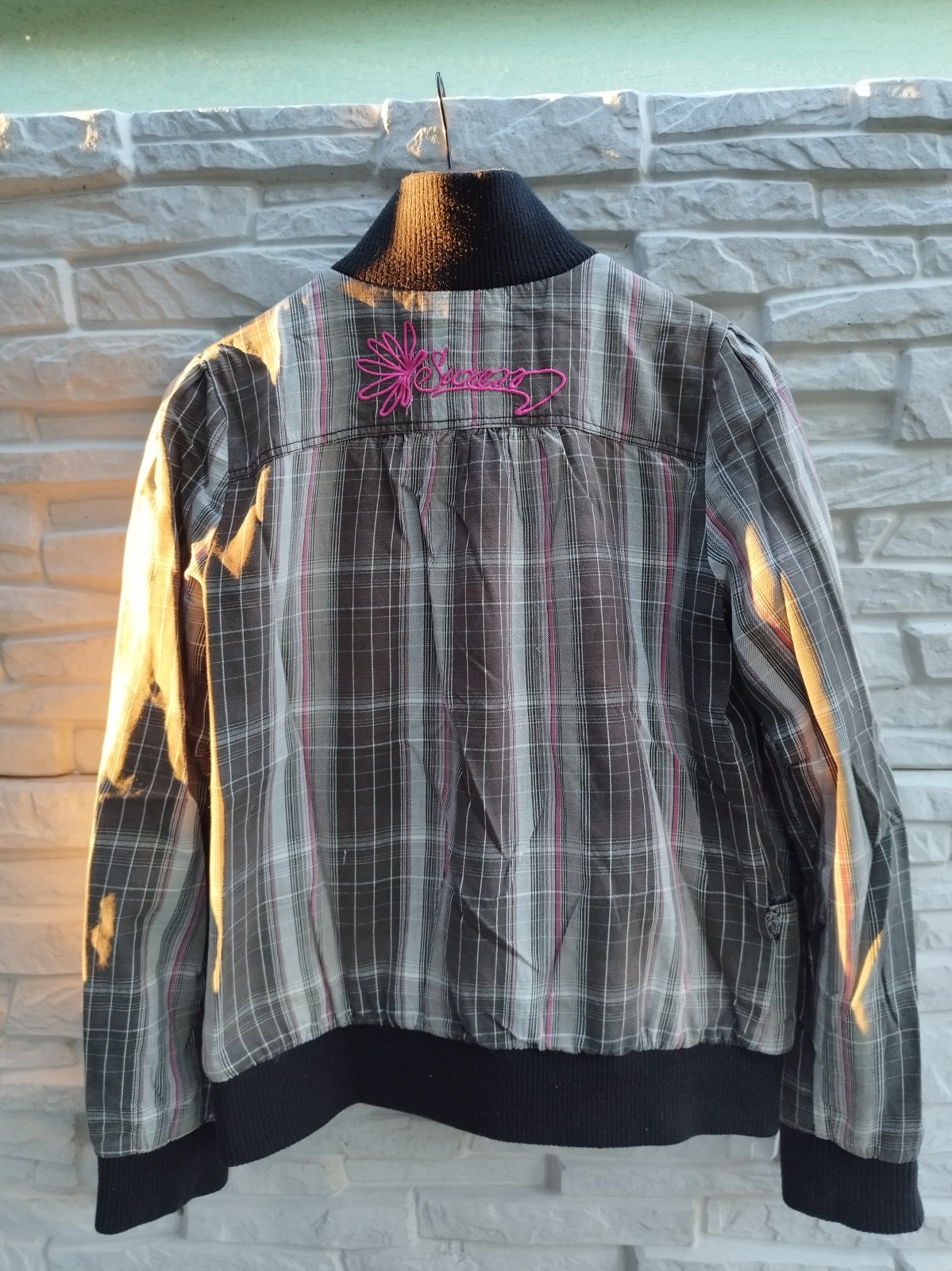 Prechodná bundička na jar/jeseň, značka Kenvelo. Bola už nosená, zvnútra pod ľavou pazuchou podšívka je rozpáraná pribl. 5 cm.