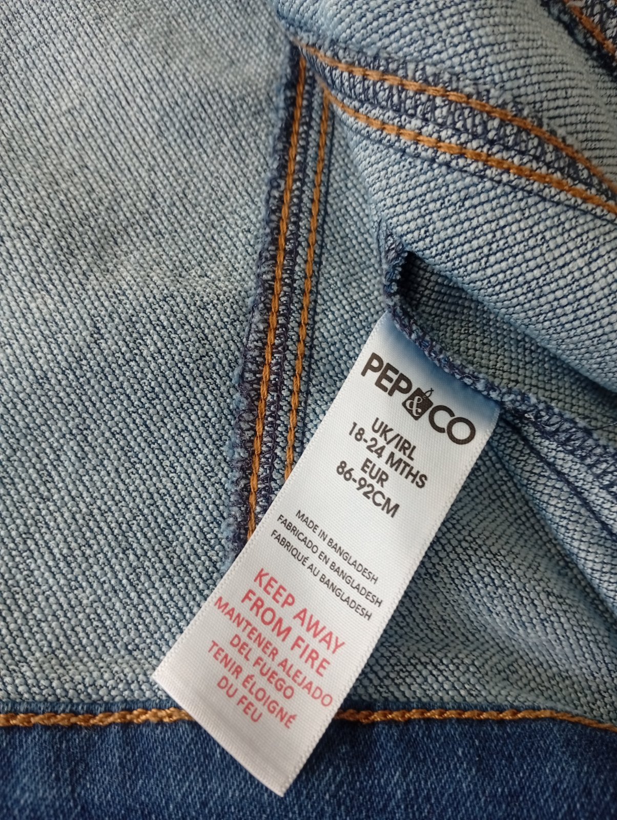Ako nová, pár krát oblečená. Vhodná pre dievčatko i chlapčeka. Veľmi pohodlná riflovina denim, značka Pep&co. Cena 6€ plus poštovné