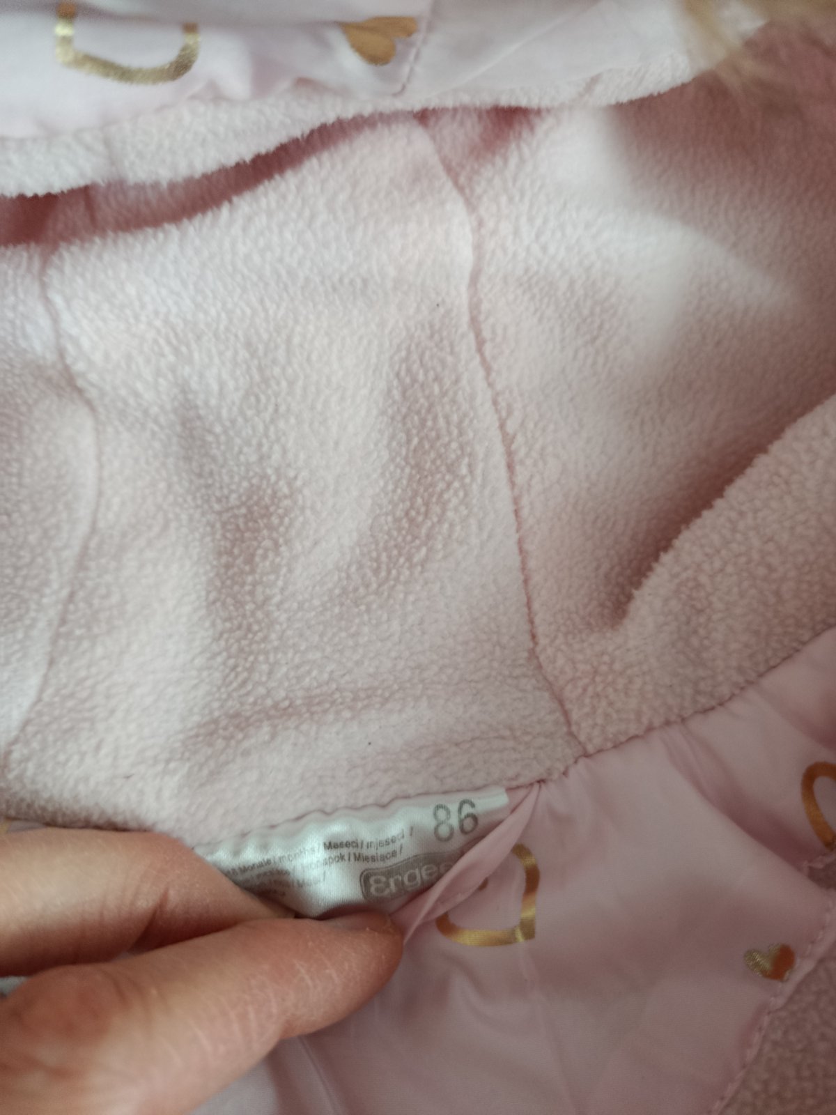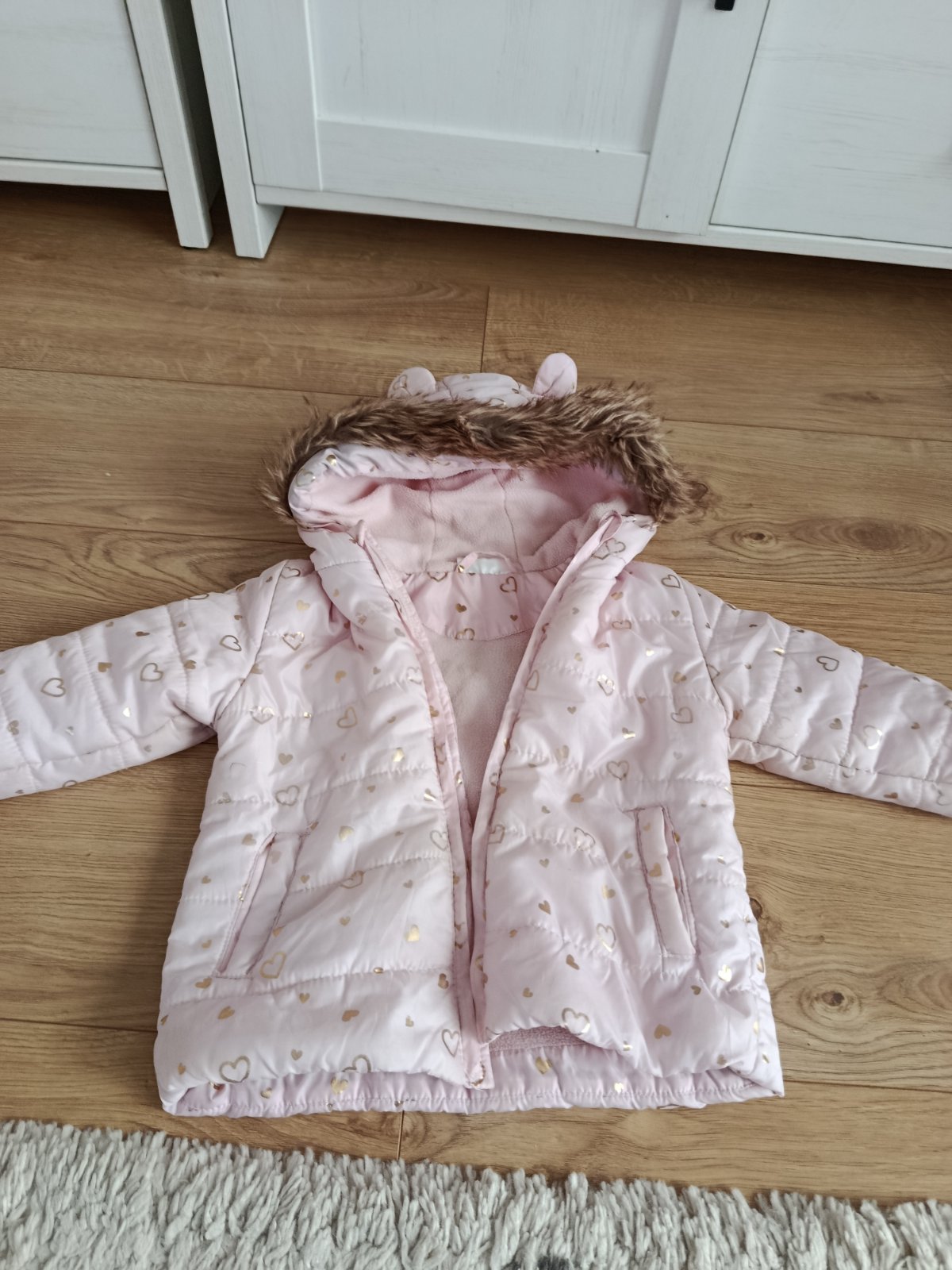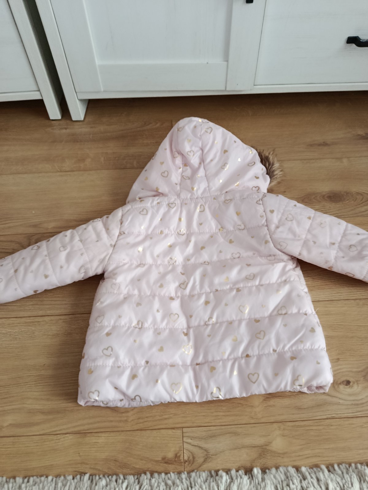 Krásna bundička na prechod v jemne ruzovej farbeso zlatými srdiečkami. (1,5-2r.)