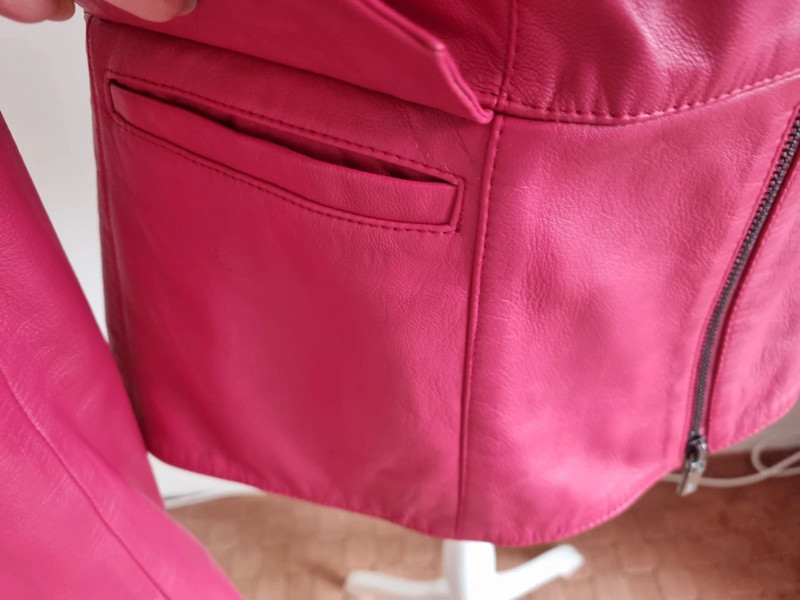 Nenosená, farba bordovo-malinová, krásna mäkká, kupovaná nová, pc 240 eur, bola v zľave 10 %, lebo má maličký fliačik na koži nod kúpenia viď foto, vidieť len z blízka, dlžka 62, prsia 45x2, pás 39x2, spodok 47x2, rukáv od krku 73, šírka ramien 39
