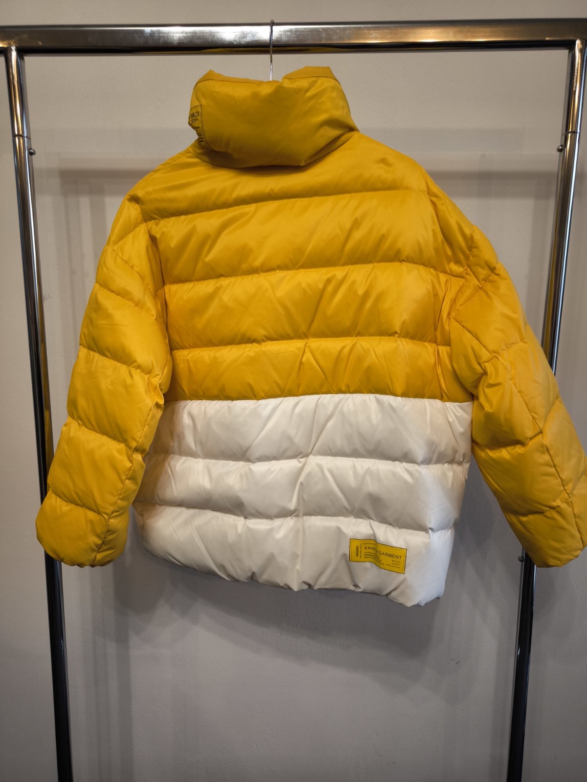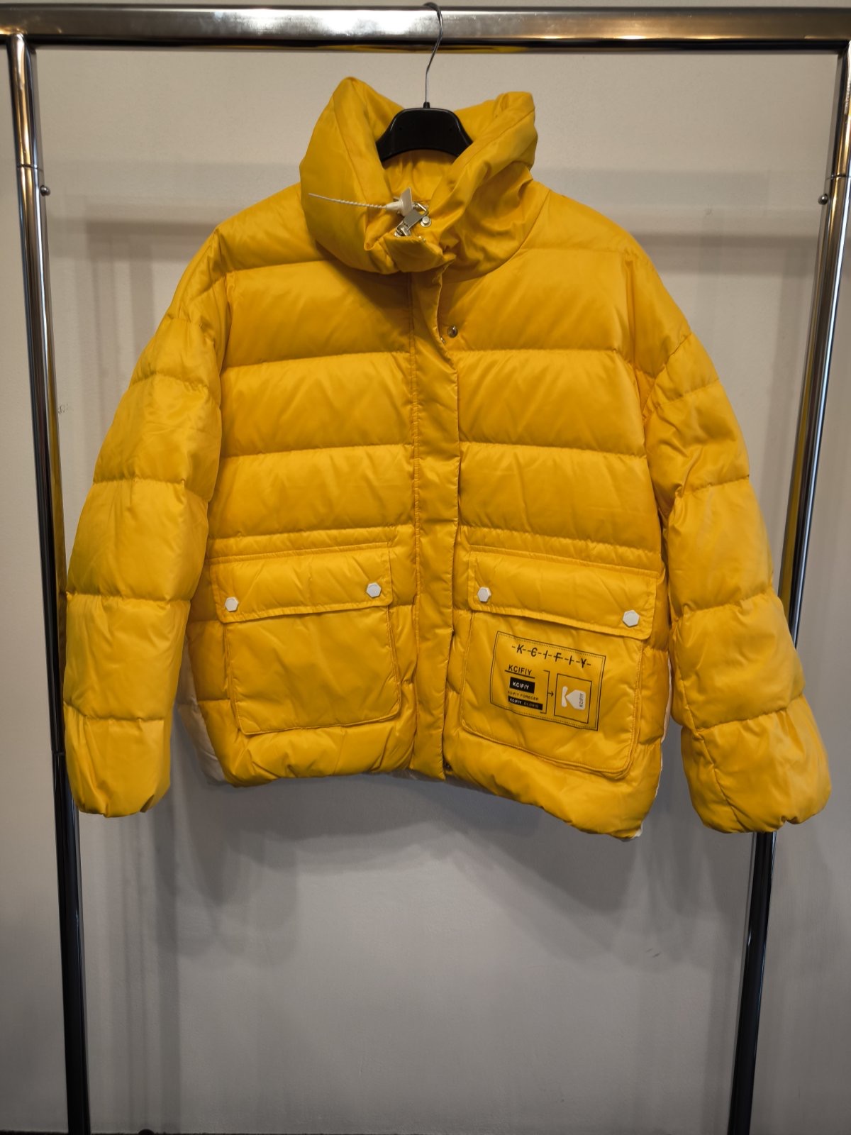 krasna ziarivo zlta riflova bundicka kratsieho strihu . velkost UNI, sadne na rozne velkosti . na mensich velkostiach vyzea pekne ako oversize model.
