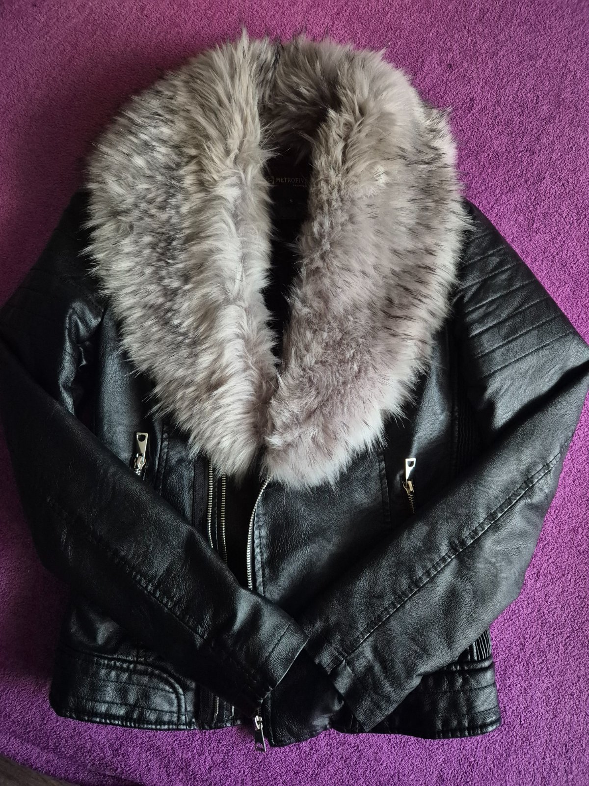 Predám pár krát oblečenú mierne zateplenú koženú bundu s odnimatelnou kožušinkou, velkost S . Vhodná na jeseň a zimu