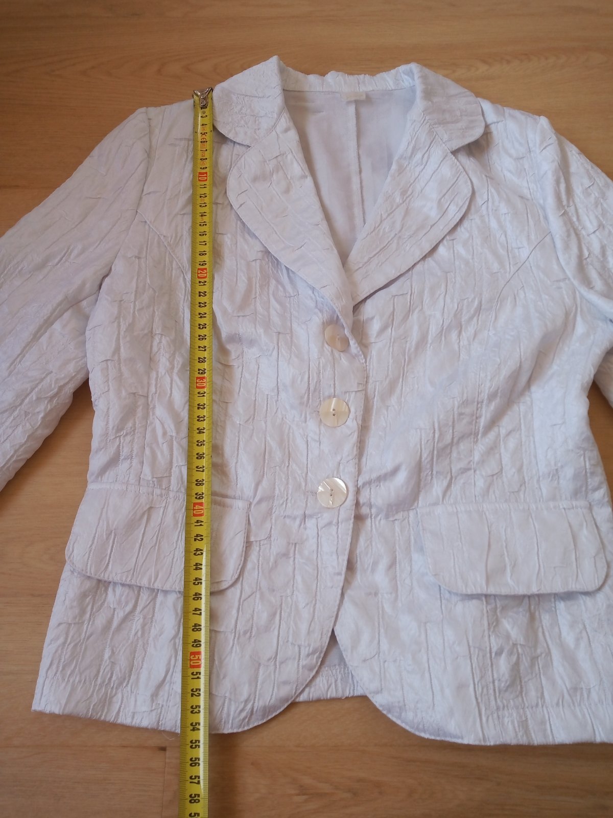 Krásne letné sako s 3/4 rukávmi, oblečené 1x, je mi veľké. Ako nové. Je podsité , na vrchu jemný dierkovaný vzor.