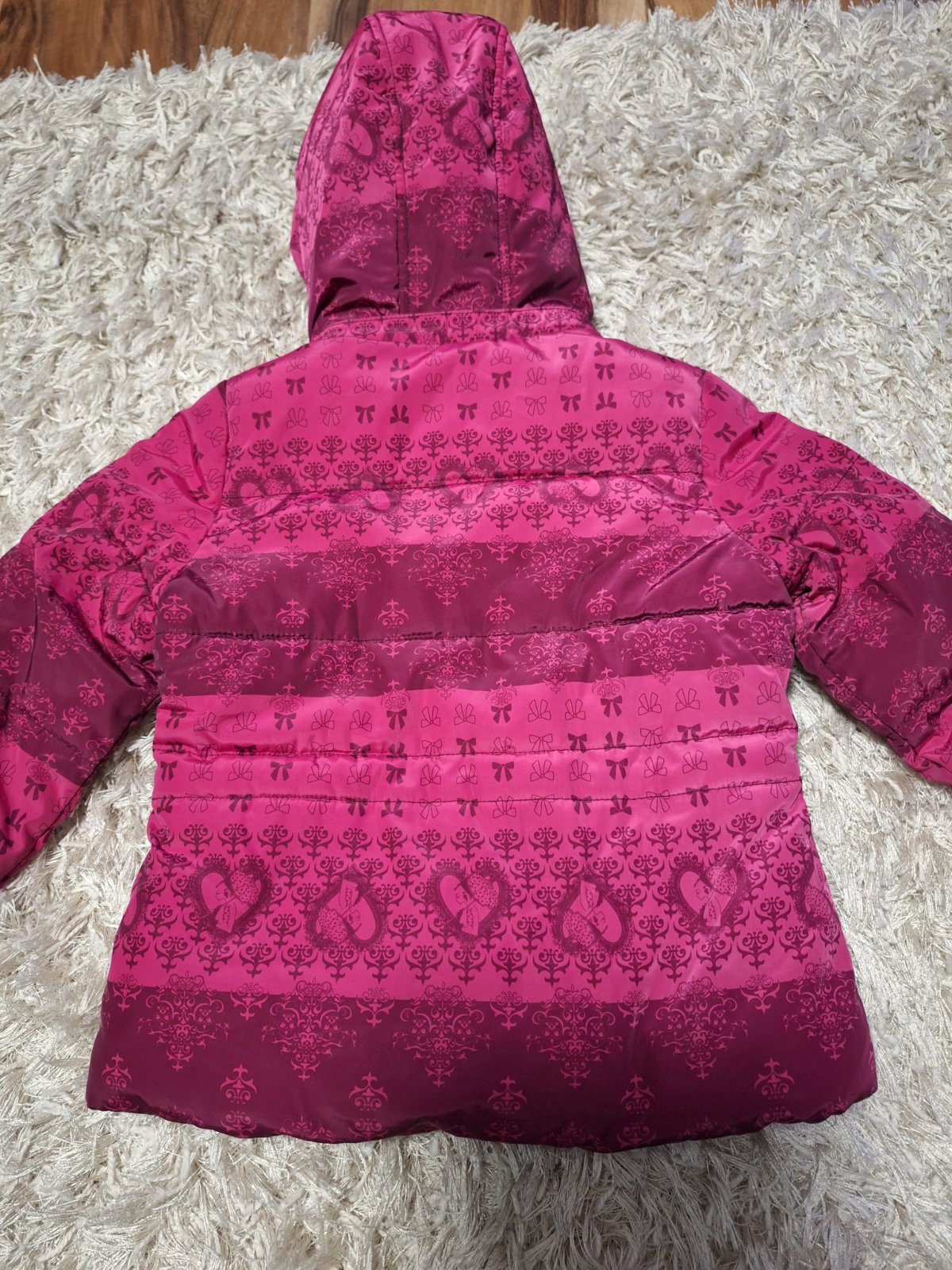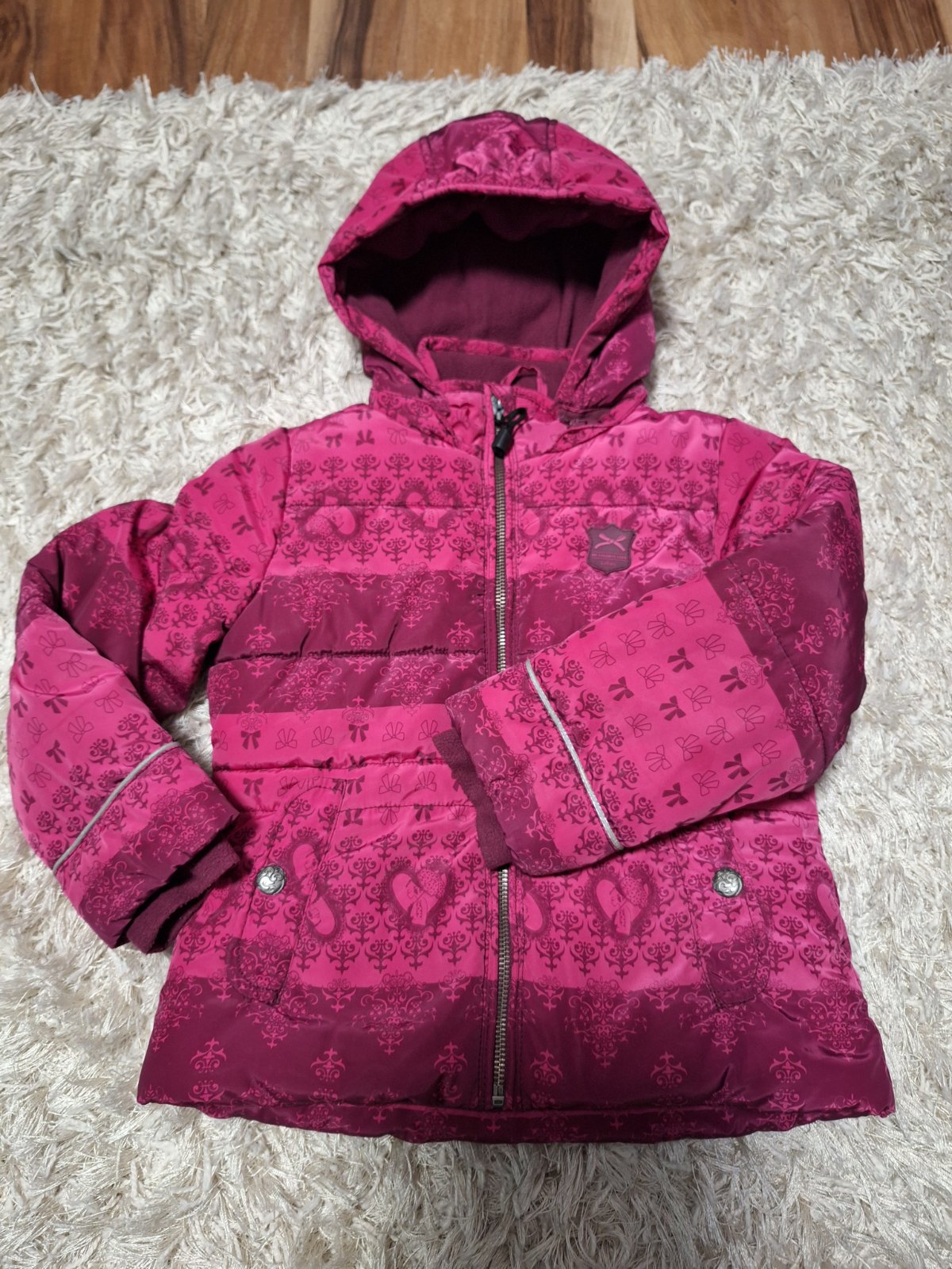 dvojvelkost 116-122, presivane bundy,vetrovky,podsite teplym flisom.Dievcence ich mali rady.Vhodne na miernejsiu zimu ci neskoru chladnu jesen,my sme v nich fungovali celu zimu,boli volnejsie,tak p...