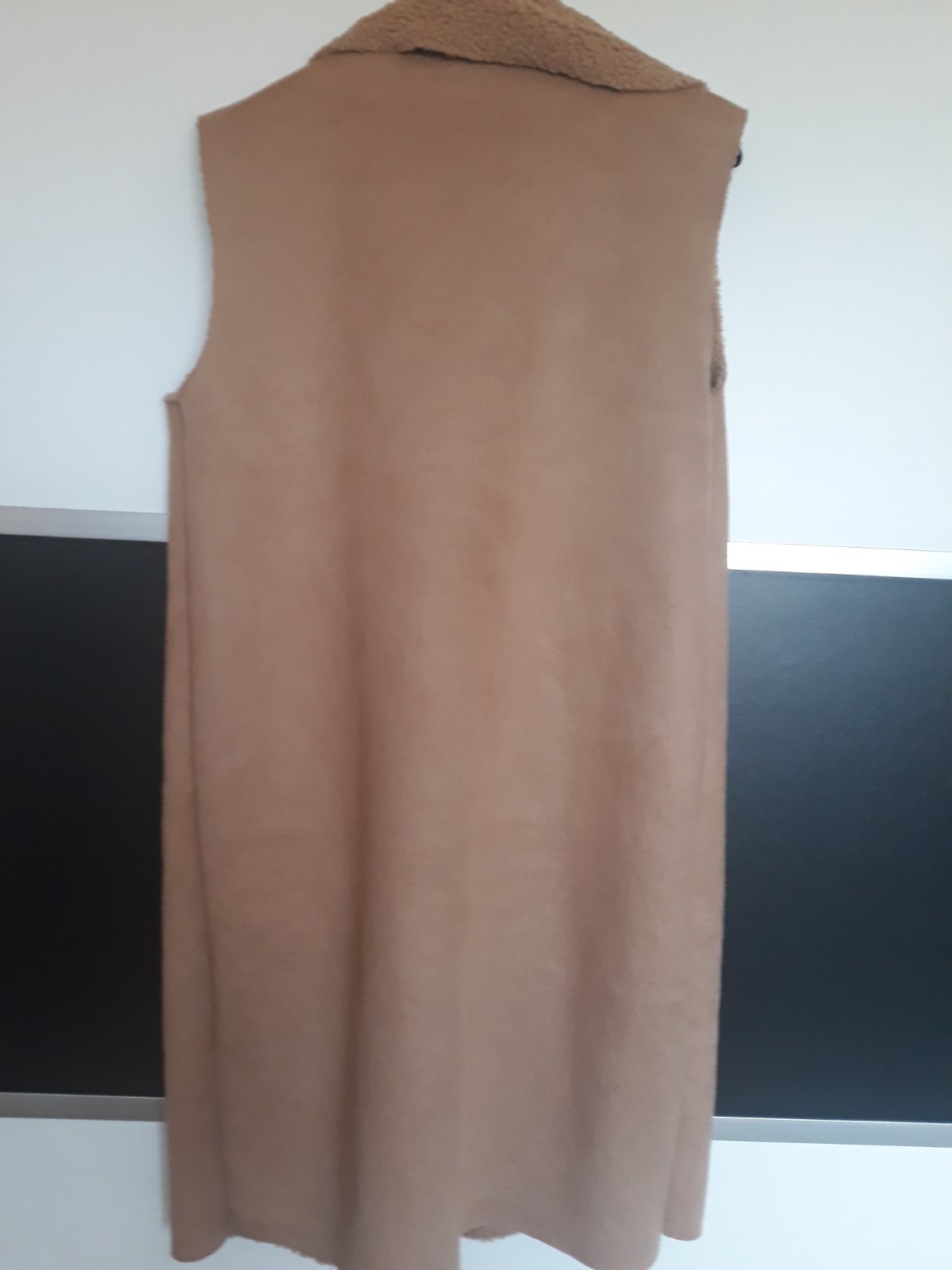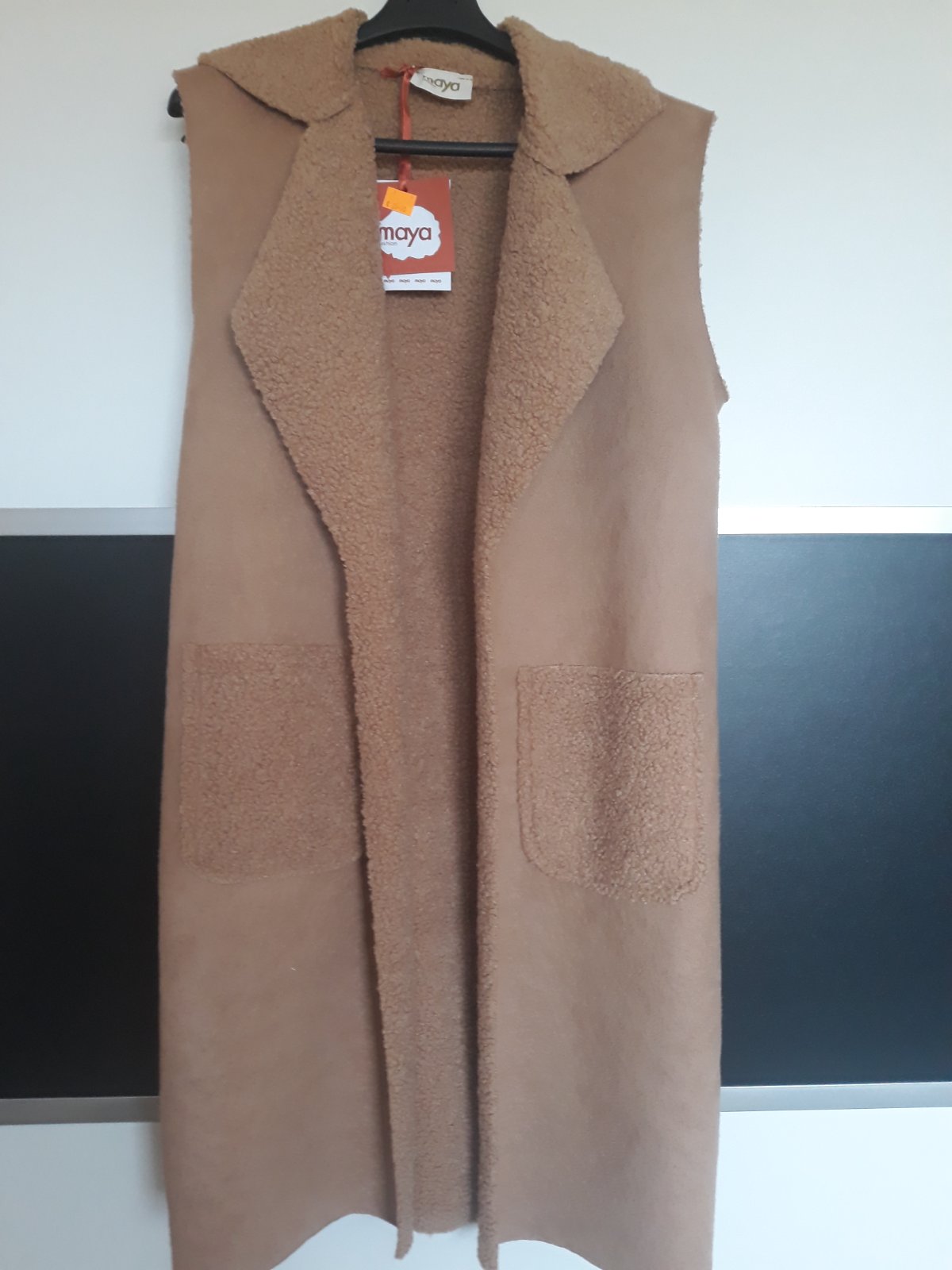 Predám novú dámsku hnedú vestu s vreckami bez zapínania s kožušinkovým vnútrom..teplučká..veľkosť uni..šírka prsia 50cm..dĺžka 93cm..cena 23+poštovné