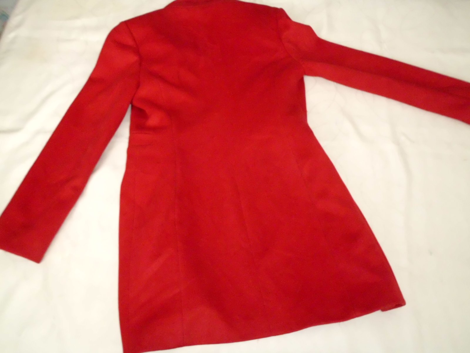 Predám dámsky kabátik talian. značky Pleas vel. M , šírka cez prsia 49 cm , dĺžka 90 cm, rukáv 63 cm od pleca, s podšívkou, 2 vonkajšie vrecká ešte zašité , veľmi príjemný materiál zloženie na foto ..., krásna sýta červená , pár-krát oblečený, top 100% stav