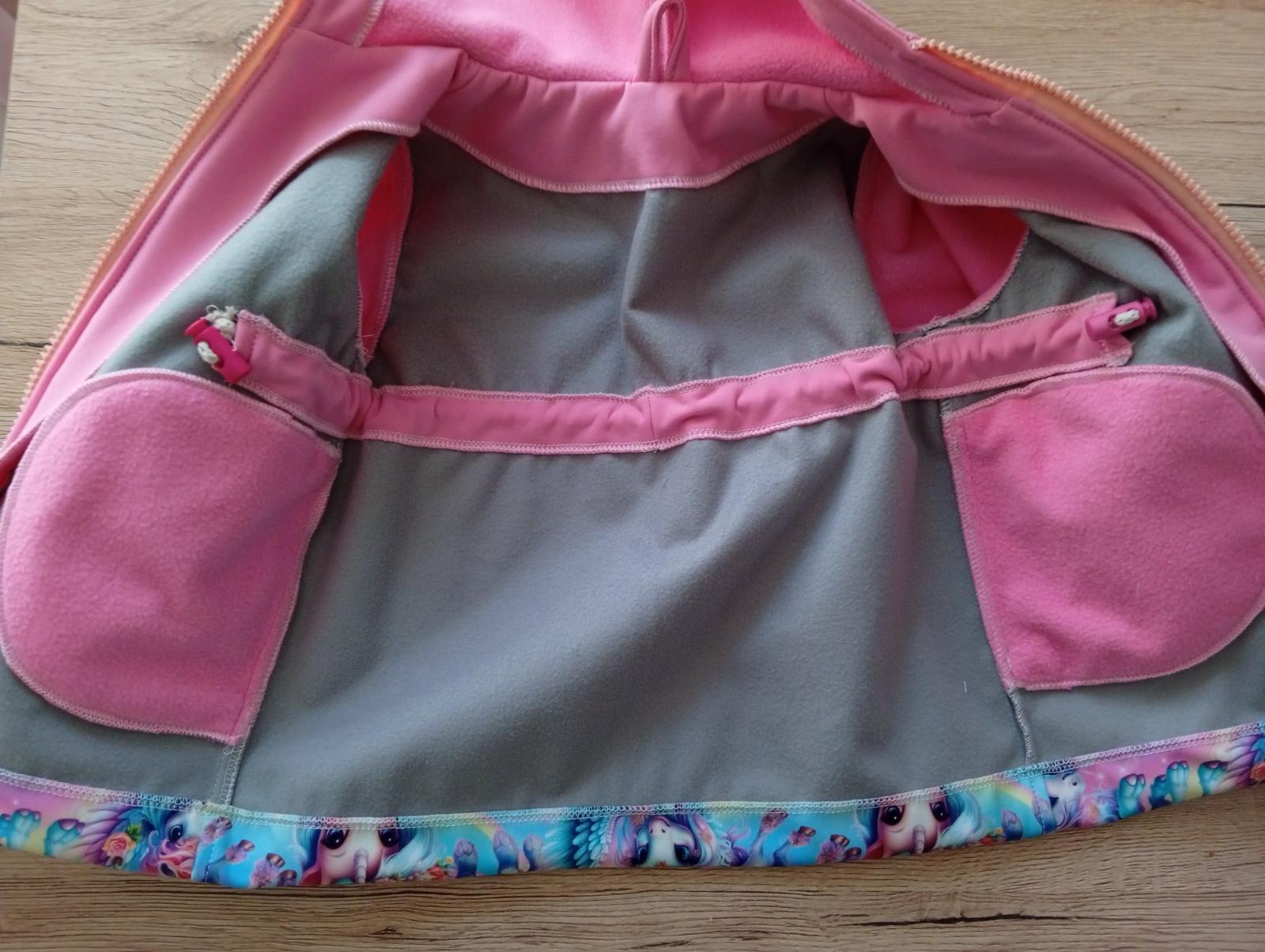 Dievčenský prechodný kabátik zo zimného softshellu na zips, s neodopínateľnou kapucňou a stojačikom, v páse nariasený, preto má nádherný princeznovský efekt👸nariasený detajl na kapucni a spodnom le...