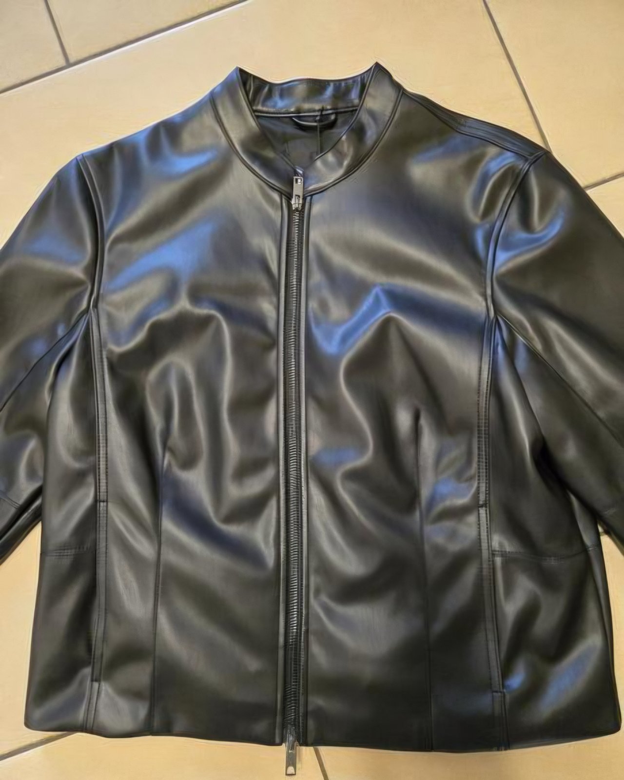 Ponúkam na predaj v top stave koženkovu bundu na zips, má dve bočné vrecká na zips. Da sa prať v práčke. Šírka cez prsia je 56cm,dlzka bundy od ramena je 61cm. Cena za 16e + poštovné prevodom 3,50 doporučene. 1x oblečena, nepoškodena.