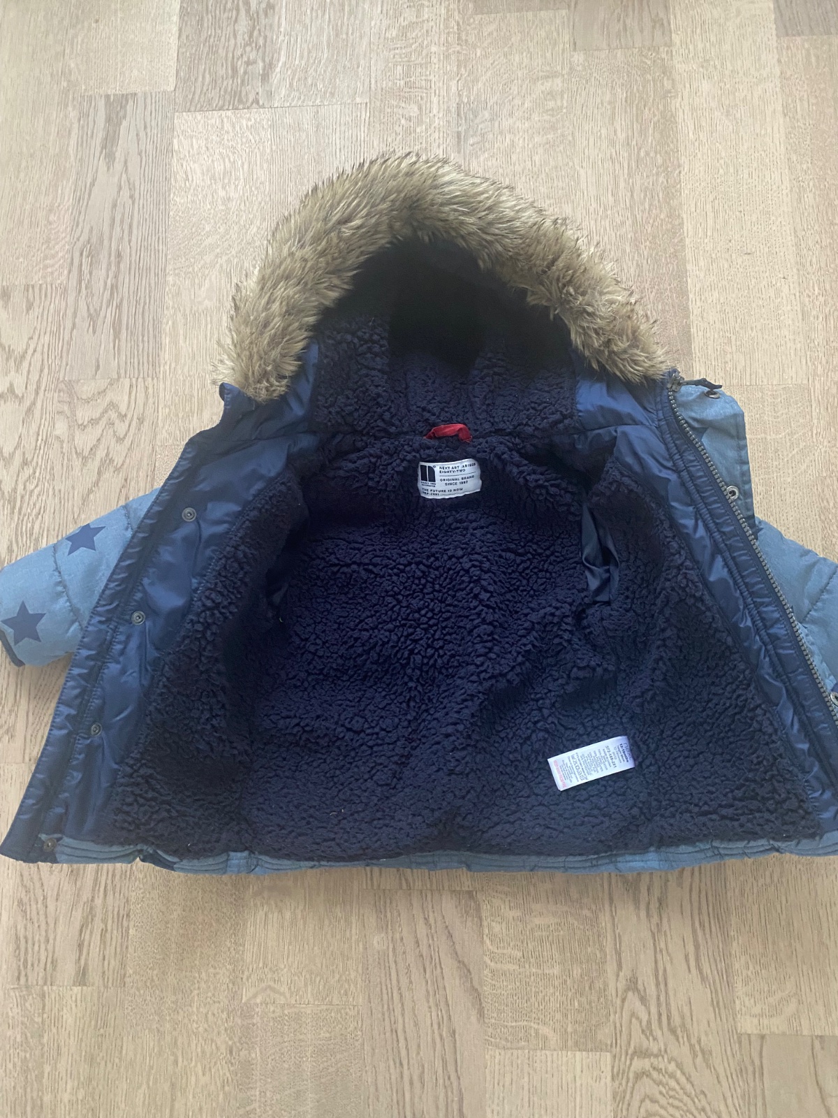 Bunda Next vel 86 zateplena modrym barancekom v stave ako nova.