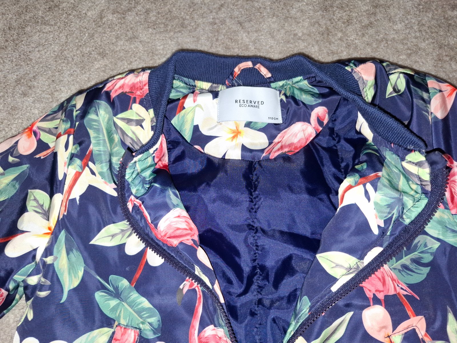 Krásna bundička značka Reserved Vysoký stojačik Zapínanie na zips Dlhé rukávy s elastickými manžetami Dve predné vrecká Elastický lem Veľkosť 116, 122, 128 Nové PC 24,99€ 2R/116,2.122,2.128
