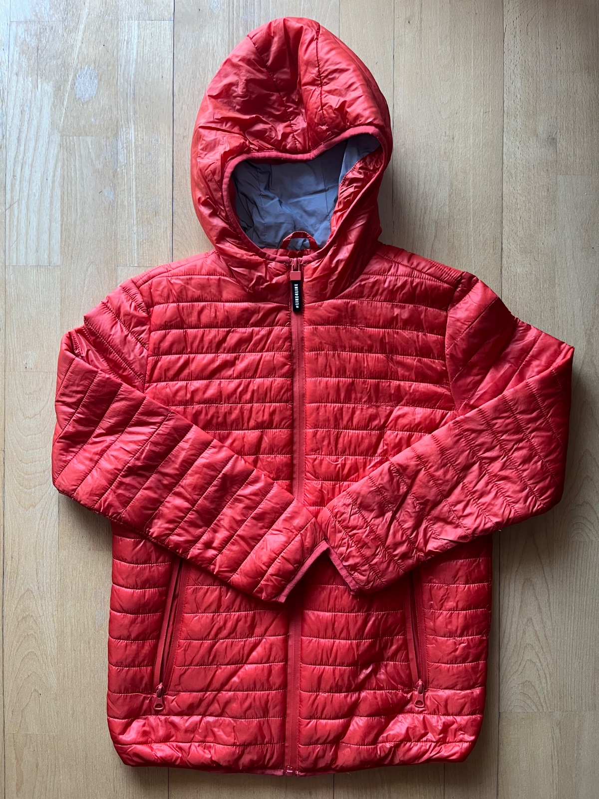 Predam prechodnu zateplenu bundicku, znacka OVS, velkost na 11-12 rokov, výplň polyester. Malo nosena, super stav. Farba je sytooranzova. Zadna dlzka 63 cm, sirka pod pazuchami 49 cm, dlzka rukava od krku 67 cm (z toho plecnica 12 cm), kapucna vyteplena, na fix. Predne 2 vrecka na zips. BA - Ruzinov.